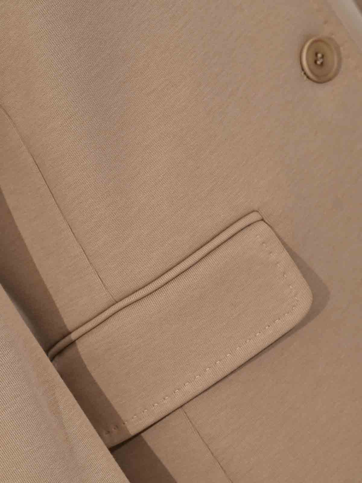 女性用ウィークエンドマックスマーラコットンジャージーブレザー wkdginnasta モデル、生地:コットンジャージ、パターン:無地、袖:ロング、襟:クラシックラペル、クロージャー:ボタン付き、ポケット:フロントフラップと胸にウェルトポケット付き、ディテール:テーラード構造、トーン・オン・トーン・ステッチ、裏地:はい、フィット:レギュラー