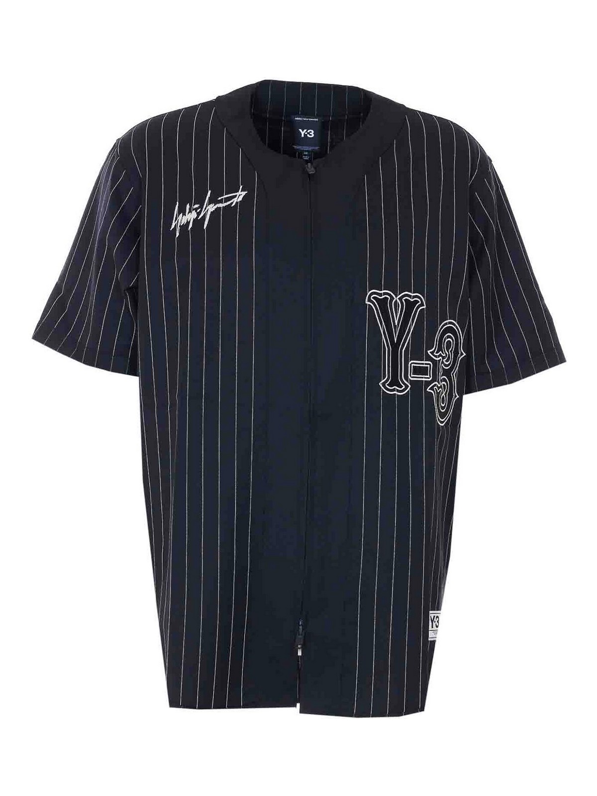 アディダス Y-3 ブラックエリート 5 ベースボールTシャツ、クルーネック、前面ファスナー開閉、ストライプ、前面にパッチロゴ、半袖