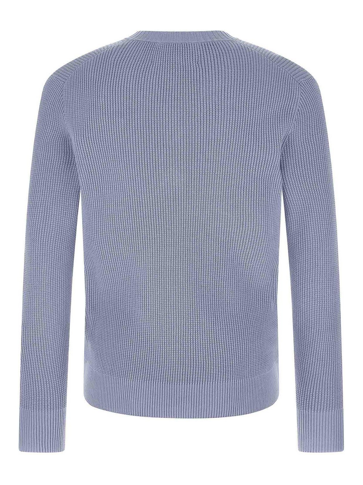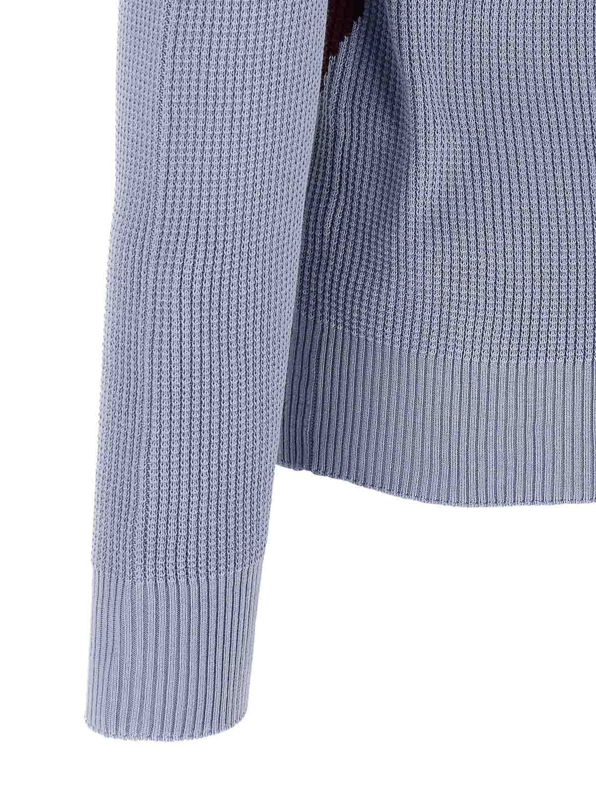 Waffle stitch cotton sweater with front argyle jacquard pattern, v-neck, long cuffed sleeves.