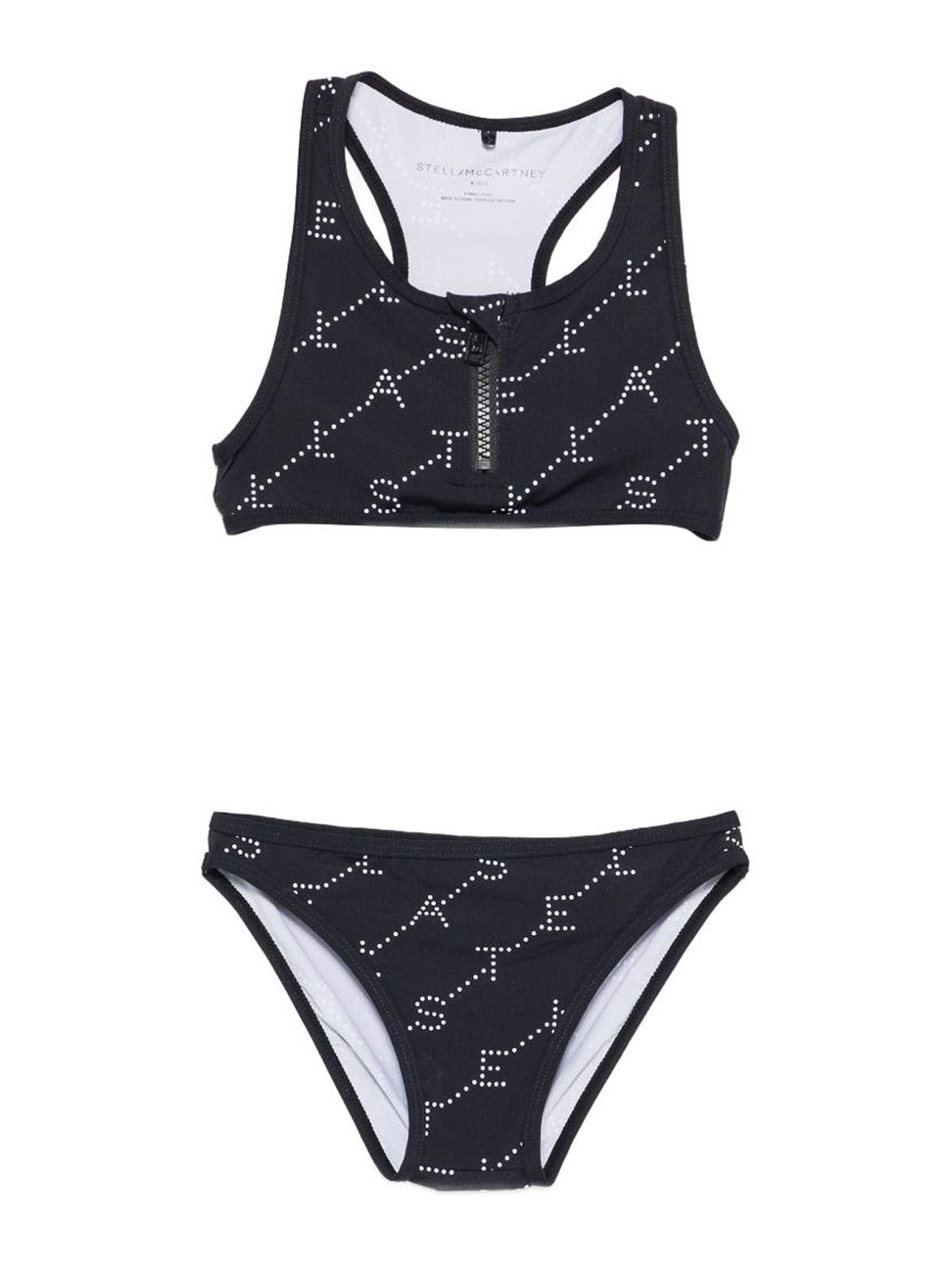 Bikini with logo features black logo print with zip