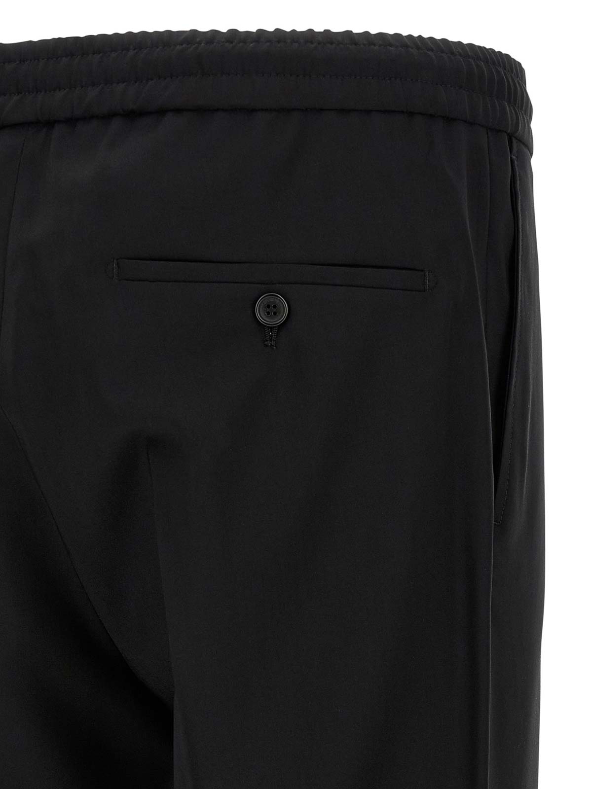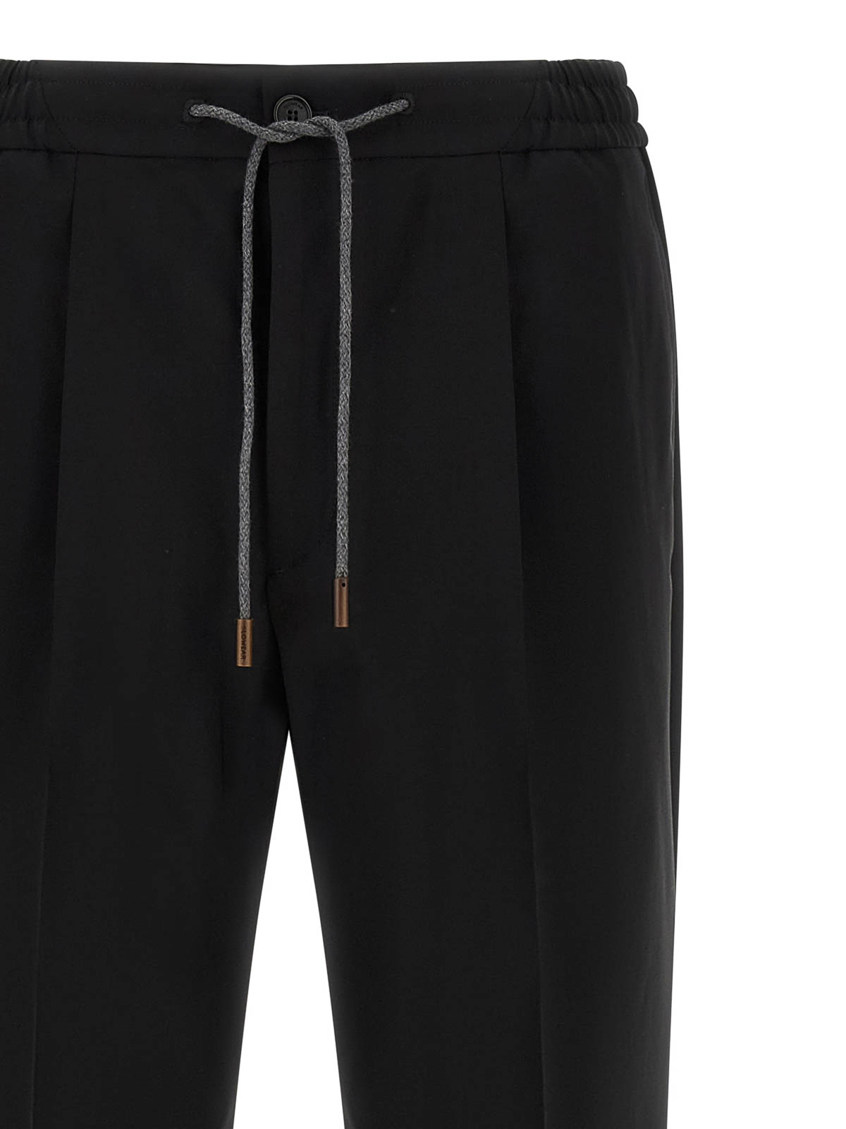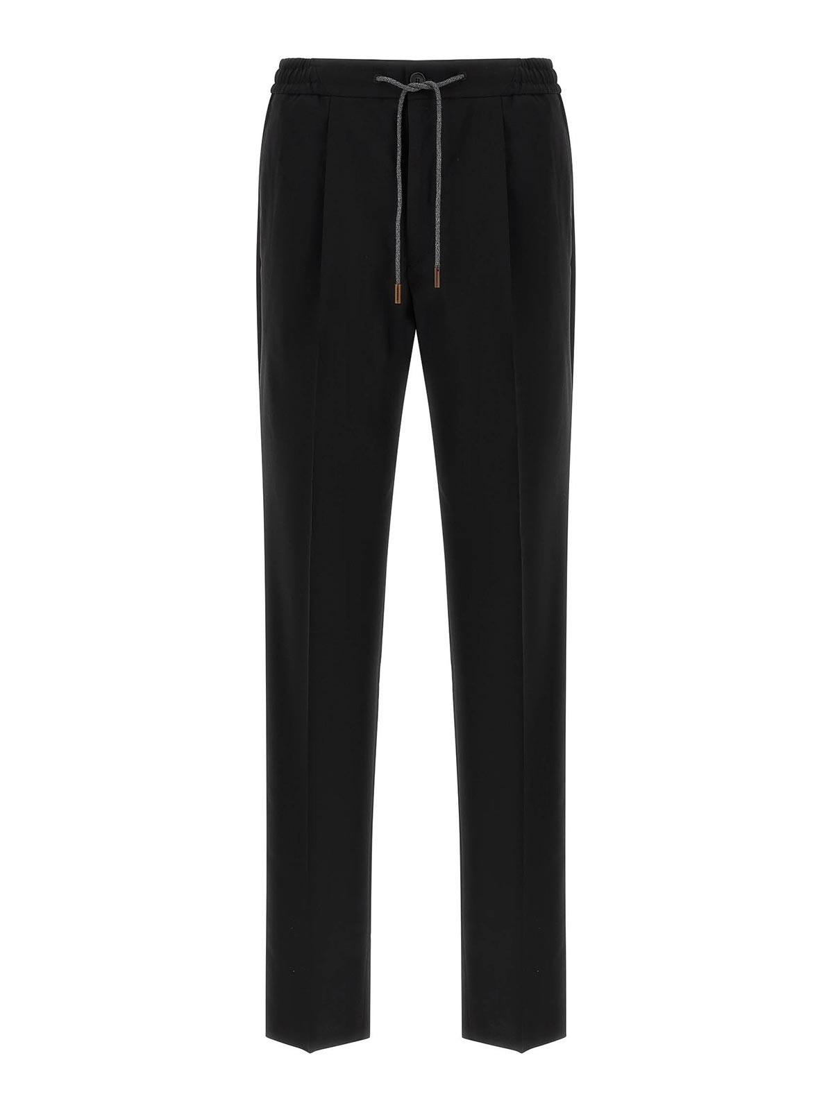 modello 78' cool wool pants, straight leg, stretched pleat, drawstring elastic waistband, zip and front button closure, pockets.
