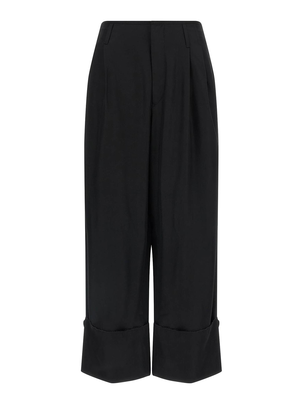 Tailored 'diana' trousers, double front pleats, front zip closure and hidden hook, side pockets, maxi turn-up on the hem with side metal button.