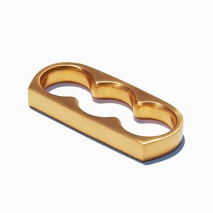 Binary 18 karat gold plated brass knuckle ring. - Sizes: S (index finger US6), M (index finger US7), L (index finger US8), XL (index finger US9) - Face: 0.27" x 2" / 7 mm x 52 mm - Fit: Please go one size up for wide band design - Laser logo engraving - Nickel free gold plating - Base metal is brass - Handcrafted - MYW05GP044