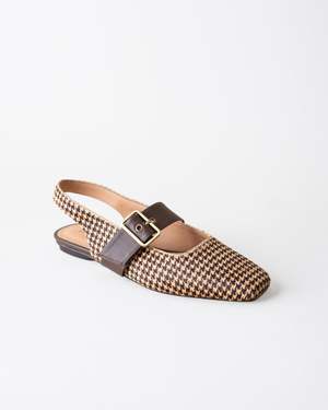 Smart, but never stuffy, the Farrah is a slingback flat with a sharp square toe and chic buckle detail, designed to move effortlessly from office hours to after hours. Responsibly handmade in Peru. Fit For narrow and regular widths this style may run a bit large, so you may need to size down. Half sizes and wider widths should size up. Materials Leather and textile (Black + White Tweed) or genuine calf hair (Chocolate Tweed Calf) upper, leather insole, leather lining, leather sole, and stacked leather heel with rubber heel cap. Measurements 5 mm heel. Description Smart, but never stuffy. Farrah is a slingback flat with a sharp square toe and chic buckle detail, designed to move effortlessly from office hours to after hours. Responsibly handmade in Peru.
