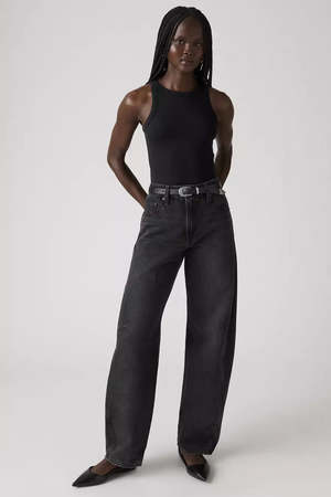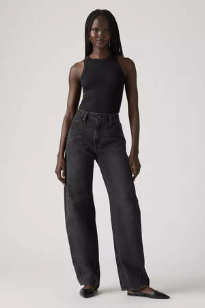 Baggy Dad Barrel Rebel Edge Barrel Jeans - Black