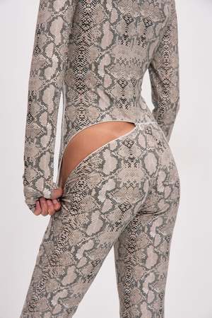 Elevate your style with the Python Long Sleeve Turtleneck Zip Up Full Bodysuit. Designed for a sleek, second-skin fit, this statement piece features a striking python print, a high turtleneck, and a full-length front zipper for effortless wear. The long sleeves with thumbholes add a modern touch, making it perfect for both casual and bold, fashion-forward looks. Whether styled with heels for a night out or layered for a street-style moment, this bodysuit is the ultimate blend of edge and elegance.