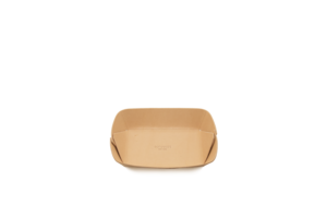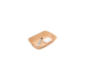 Medium plate in vegetable tanned leather. Jongji Medium is a plate designed to help keep your small items together and organized. Inspired by paper food packaging, it is fully constructed in Italian vegetable tanned cowhide using high-end traditional leather craft techniques. Jongji Medium is ideal for little jewelry, lip balm, and keys. Color: Natural Size: Approx. 5" Width x 7" Height x 1.25" Depth Materials: - Shell: Vegetable tanned cow leather, Conceria Walpier tannery Natural (Italy) - Hardware (keyring): Stainless steel (USA) - Thread: Cotton/poly-blended thread tonal (France) - Edge burnishing agent: Natural beeswax (USA) - Glue: Non-toxic water-based (France) The leather used, called Buttero leather, is one of the leading products of the tannery Conceria Walpier and is made from vegetable tanned square shoulders with an aniline finish. Because it is a very natural material, any irregularities and imperfections on the surface of the leather are considered an added value and not a defect. Conceria Walpier tannery in Italy was founded in 1974 and is based in Ponte a Egola, one of the towns belonging to the Tuscan tanning district. In its 40 years of history, Walpier has always dedicated itself with passion and skill to the production of 100% vegetable tanned leathers that have become synonymous with Italian quality and excellence worldwide. Handcrafted in New York City, USA. Notice: This item is fully handmade in our studio. Due to the time-consuming process of crafting, we only carry a very limited number of pieces in stock. In case the item is not available at the time of order, you may still be able to pre-order, and we will contact you with more information about the delivery window. Production time normally takes about one to two weeks.