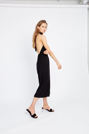 The Eclipse Buckle Back Jumpsuit is your quintessential Third Form Spring piece. Cut in premium twill Curpo and featuring wide cropped legs and an open back with tie neck and buckle back closure, it's where style meets comfort with an urban edge. - Length: 121cm - 60% Cupro 40% Modal - Half lined to upper thigh. 100% Rayon - Wide tie halter neck - Round metal buckle and eyelet closure - Relaxed fit - CB invisible zipper in trouser