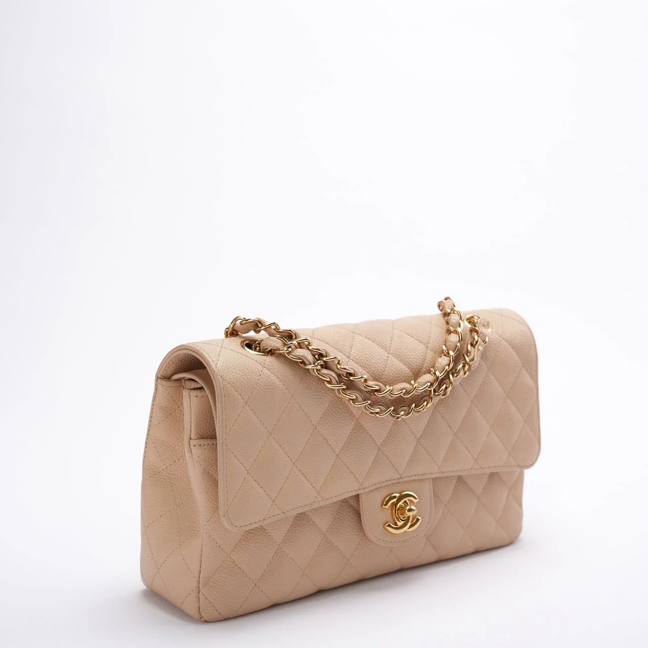 Chanel Classic Flap Bag Medium Beige Caviar Leather
