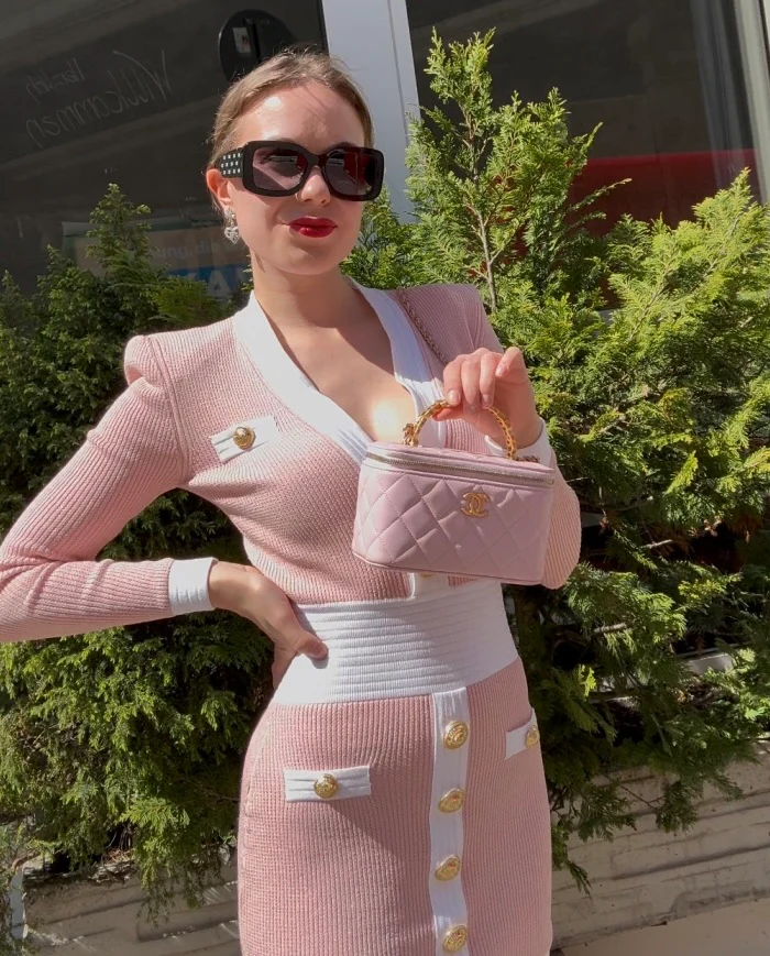 Chanel Vanity Case Pink Quilted Lambskin with Crystal Handle from 2024