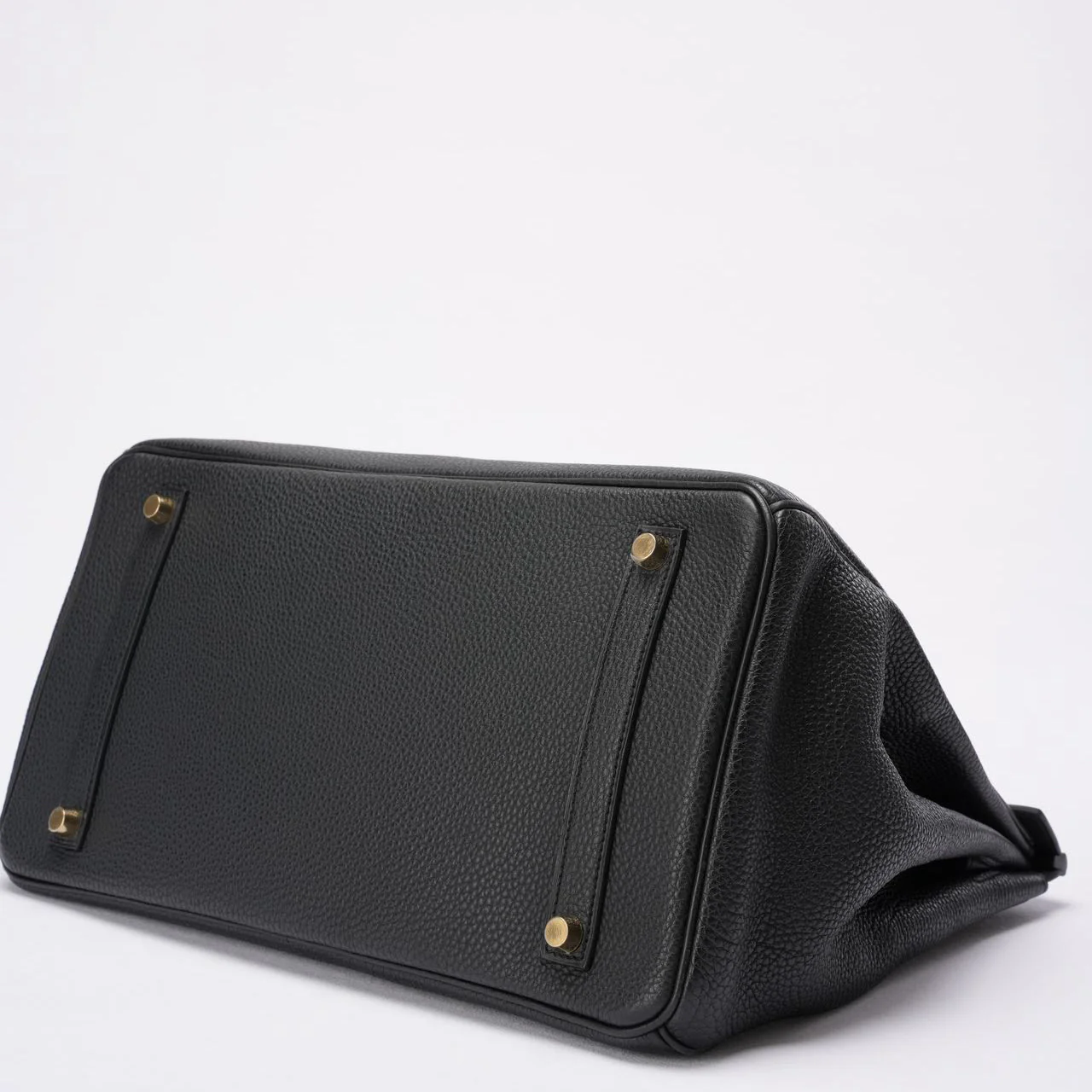 The pinnacle of classic elegance and long-lasting luxury is the Hermès Birkin 35 in Black Togo Leather (2012). This classic handbag is expertly made from soft and resilient Togo leather and has the distinctive gold hardware that contrasts beautifully with the deep black color. It is ideal for everyday use or travel because of its roomy 35 cm silhouette and structured design, which combine functionality and style. For a sophisticated, impactful look, the Birkin 35 can be carried by hand or in the crook of the arm thanks to its top handles and secure flap closure.