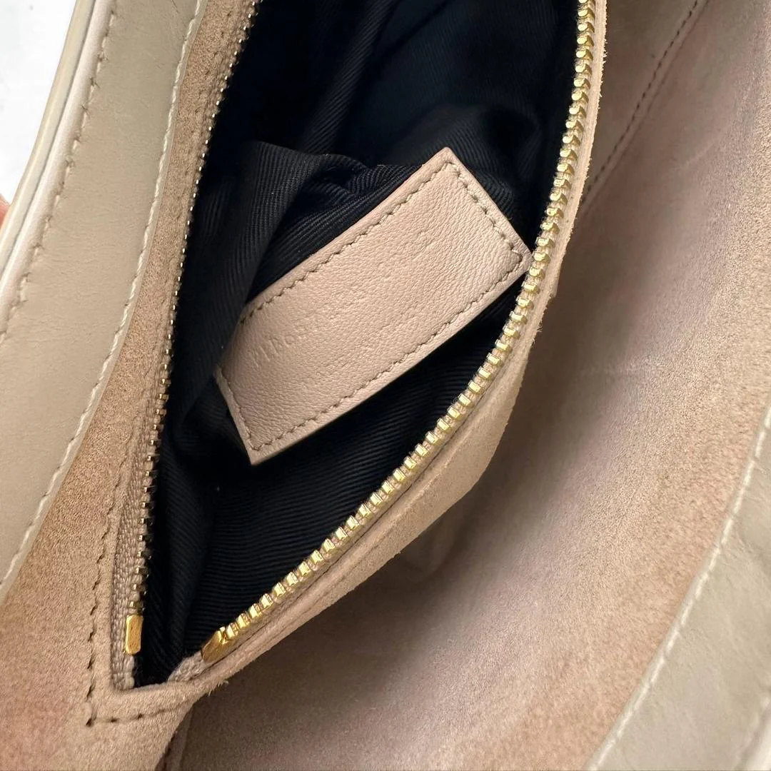 The bag can be worn over the shoulder, carried by hand, or tucked under the arm for effortless style thanks to its adjustable strap. Its sleek, hobo-inspired silhouette is both contemporary and classic. It is ideal for daily use due to its roomy yet compact interior, which smoothly transitions from day to night.