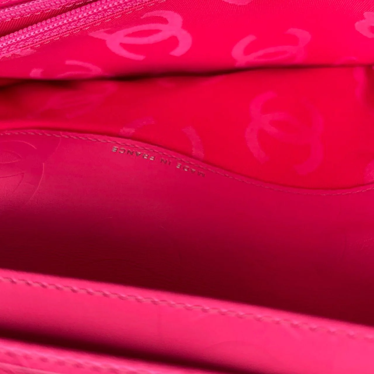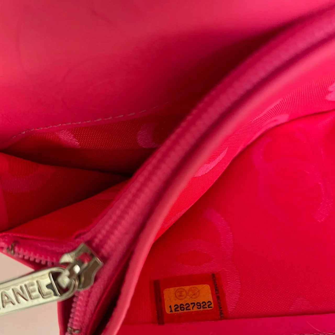 Add a bold pop of color to your accessories with this authentic preloved Chanel Cambon Yen Wallet, crafted in black quilted calfskin leather with a vibrant pink interior. Part of the iconic Cambon collection, this wallet features Chanel’s signature oversized embossed CC logo for a modern, eye-catching touch. Designed for everyday luxury, the wallet opens to a well-organized interior with multiple card slots, bill compartments, and a zippered coin pocket. The smooth calfskin exterior offers durability, while the contrast pink lining adds a playful yet sophisticated twist.