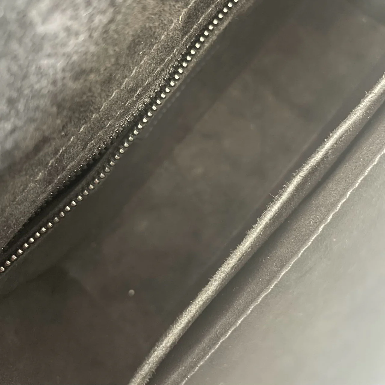 Perfectly proportioned for day-to-evening wear, the structured silhouette features rolled top handles and a removable shoulder strap for versatile styling. Minimal yet powerful, this all-black design exudes quiet sophistication.