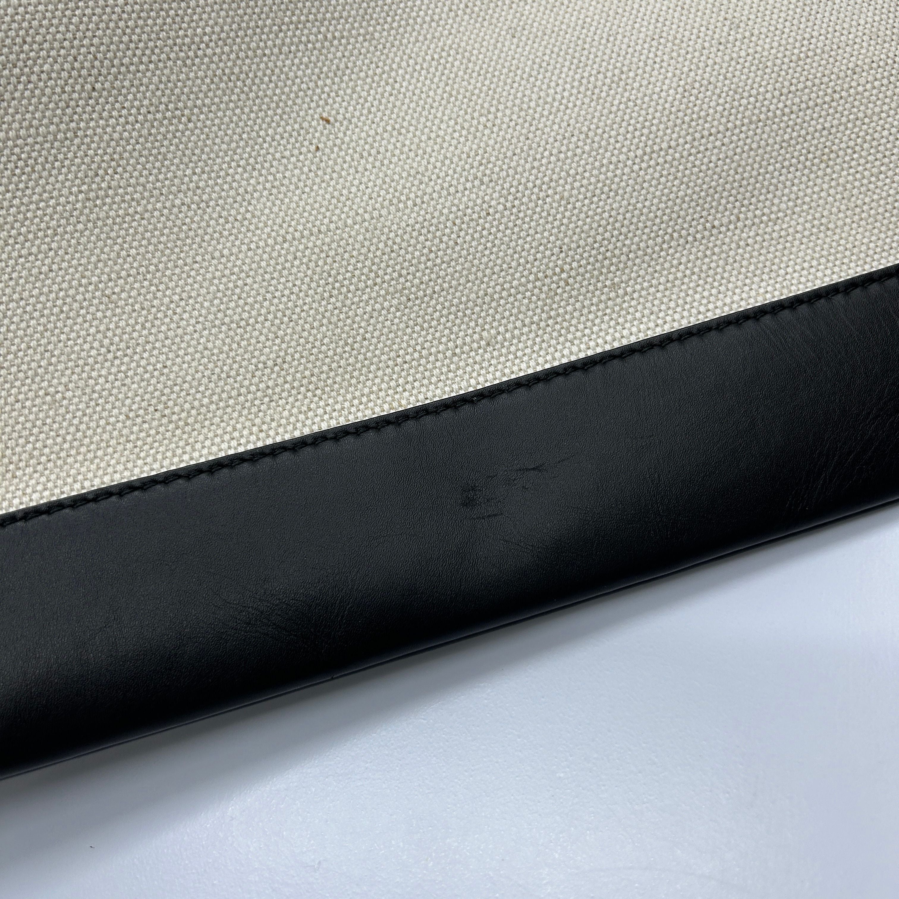 CONDITION Fair Good Very Good Great Excellent Pristine Condition Details No significant scratches on the exterior, no noticeable stains on the interior, overall in good condition. Serial Model • No Chip Authentication • Entrupy OVERVIEW Exterior Color Navy Exterior Material Cotton Canvas and Calfskin Lining Color Natural Lining Material Cotton Handle/Strap Color Natural Handle/Strap Material Calfskin Hardware Color Silver Closure Open Top Pattern Solid Size 6 x 9 x 4 Introducing the Balenciaga Cotton Canvas Calfskin Navy Cabas XS Natural, a refined tote pouch designed for the discerning woman. Crafted from durable cotton canvas and premium calfskin, this navy bag features a natural cotton lining and natural calfskin handles, complemented by elegant silver hardware. With dimensions of 6 x 9 x 4 inches, it offers a compact yet practical design with an open top closure. This pre-owned piece is in great condition, rated 8.5/10, with no significant exterior scratches or interior stains. Authenticated by Entrupy, it embodies timeless style and reliable quality for everyday sophistication.