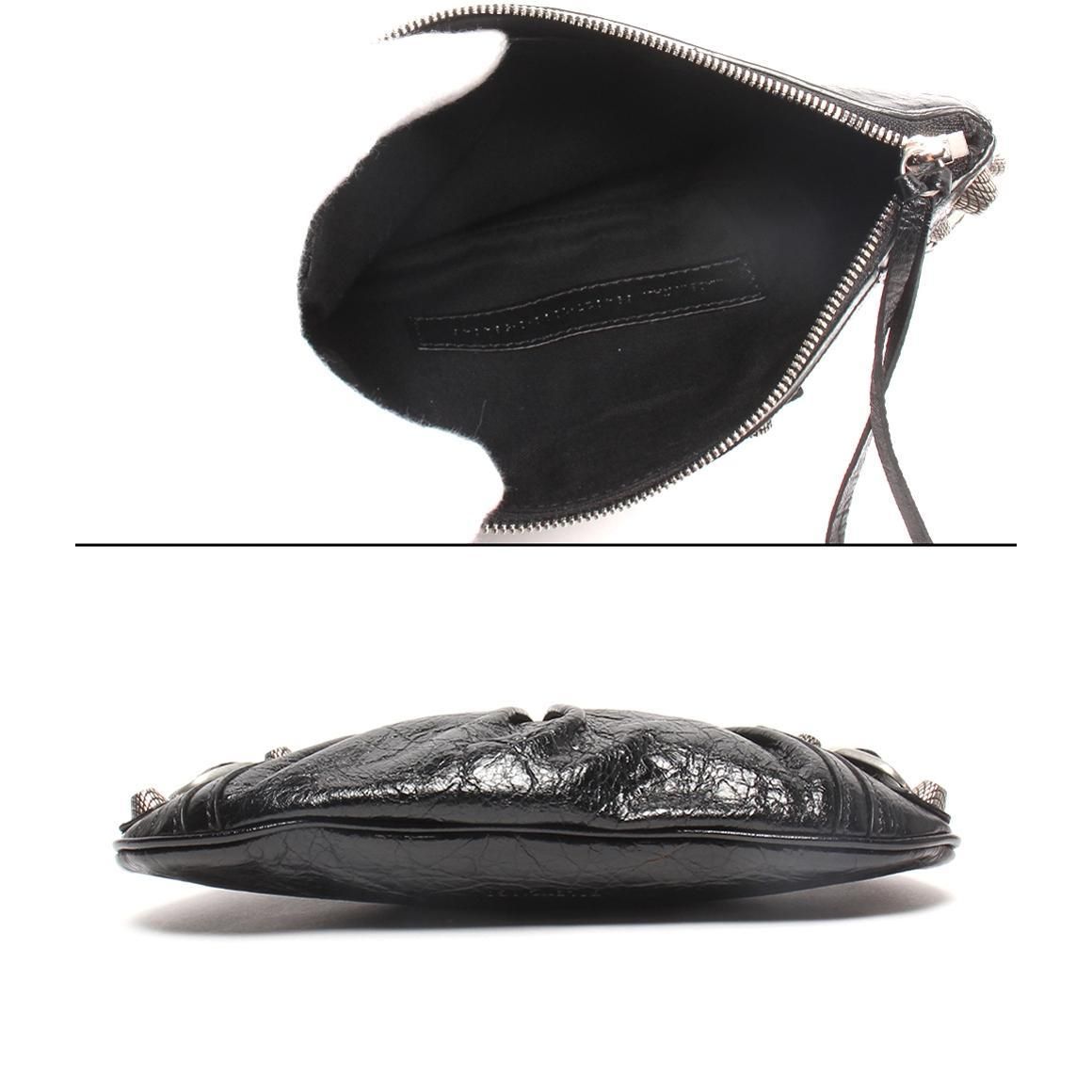 CONDITION Fair Good Very Good Great Excellent Pristine Condition Details No significant scratches on the exterior, no noticeable stains on the interior, overall in good condition. Serial Model • No Chip Authentication • Entrupy OVERVIEW Exterior Color Black Exterior Material Leather Lining Color Black Lining Material Leather Handle/Strap Color Black Handle/Strap Material Leather Hardware Color - Closure Zipper Pattern Solid Size 4.5 x 7.5 x 1.5 Discover the Balenciaga Leather Le Cagole Pouch Mini in classic black, a refined accessory from the renowned Le Cagole line. Crafted from premium leather with matching black leather lining and strap, this mini clutch measures a compact 4.5 x 7.5 x 1.5 inches, perfect for carrying essentials with elegance. Featuring a secure zipper closure and a solid pattern, it embodies timeless sophistication for the modern woman. This pre-owned piece is authenticated by Entrupy and rated 8.5/10 in condition, with no significant exterior scratches or interior stains, ensuring a well-maintained and stylish addition to your collection.