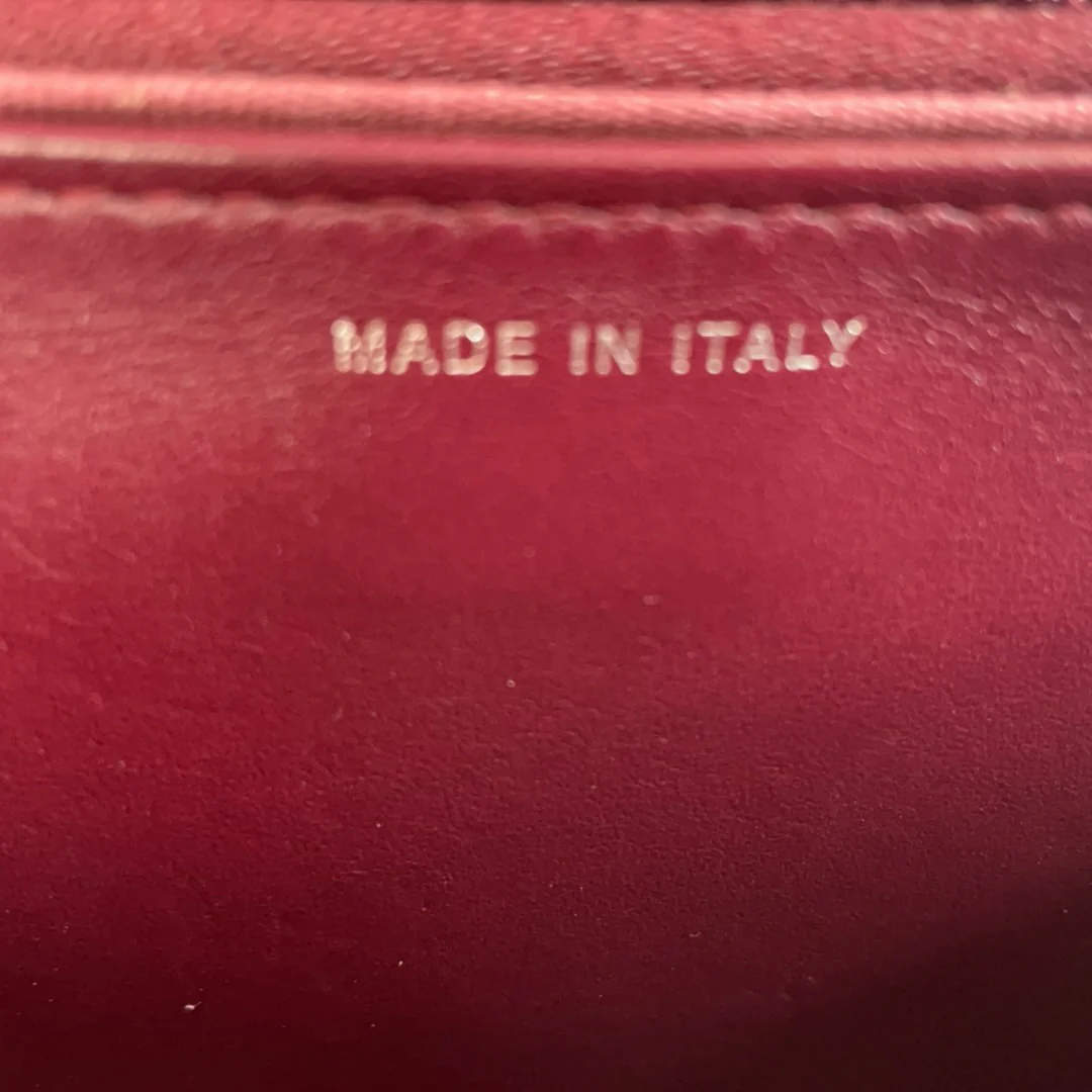 The bag features a long, leather-threaded chain strap, allowing it to be worn cross-body or on the shoulder. Inside, you’ll find multiple card slots, a zippered pocket, and a spacious main compartment, making it both functional and chic for day-to-night wear.