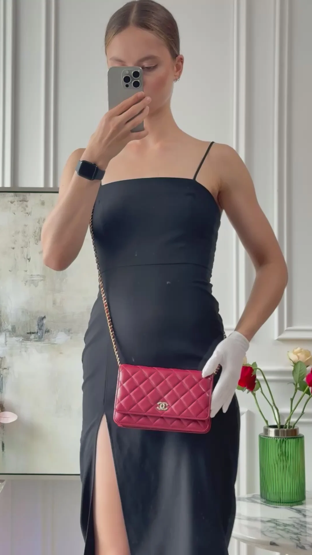 Inside, the WOC offers multiple card slots, a zip pocket, and roomy compartments for your essentials. The signature chain strap allows for both crossbody and shoulder wear — making it the perfect companion for casual outings or refined occasions alike.
