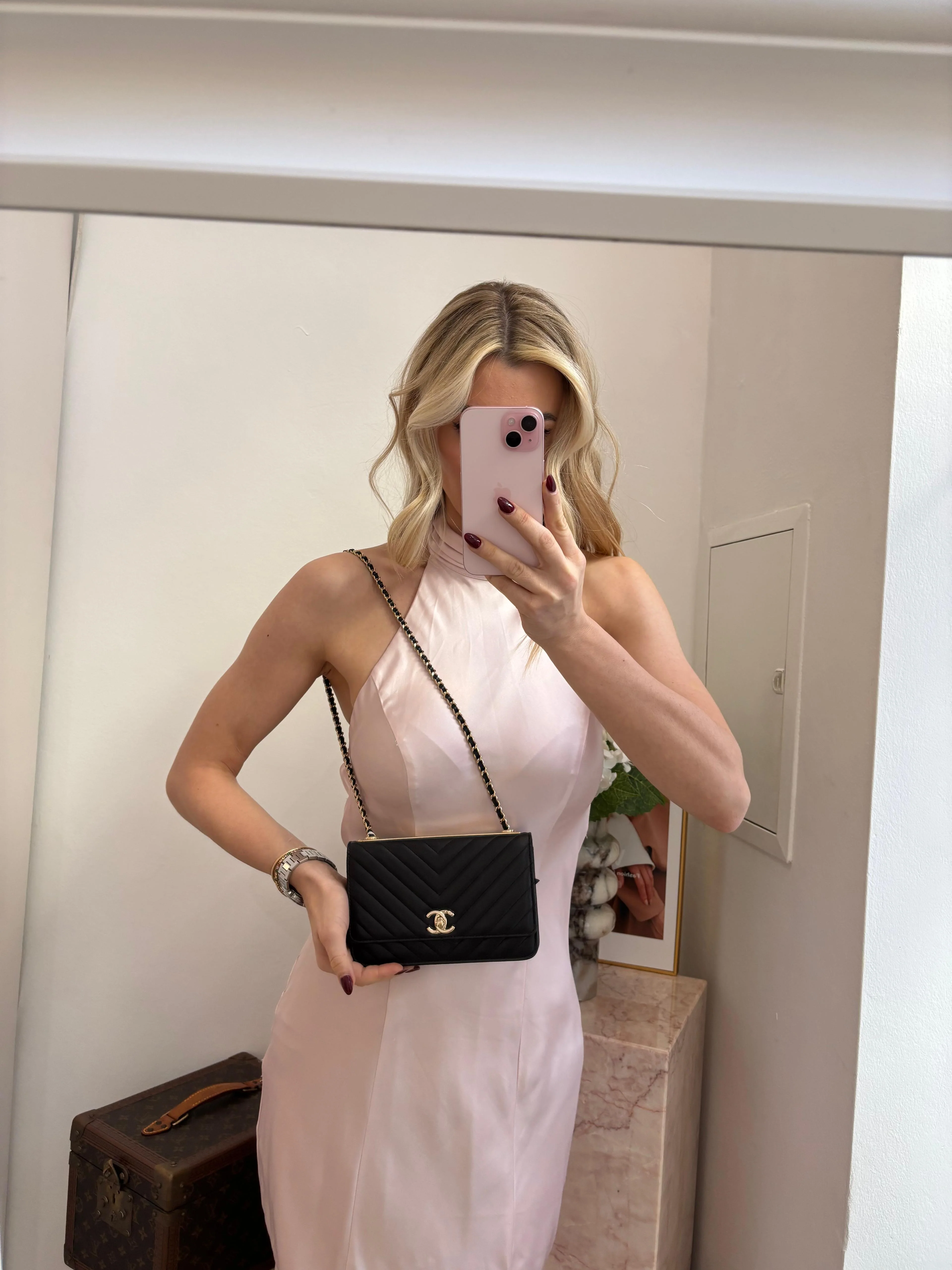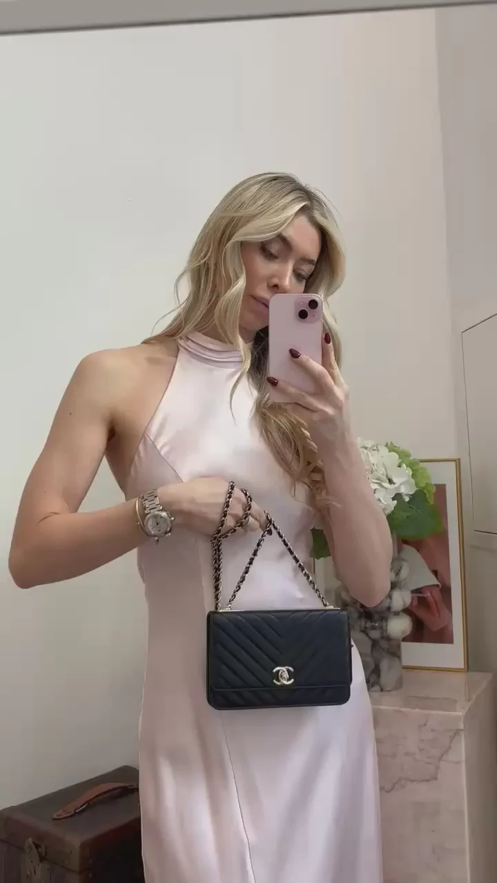 Elegant and timeless, this Chanel Lambskin Chevron Quilted Trendy CC WOC in black features luxurious lambskin leather, signature chevron quilting, and gold-tone CC hardware. With a sleek chain strap and compact design, it effortlessly combines style and functionality—perfect for day-to-night sophistication.
