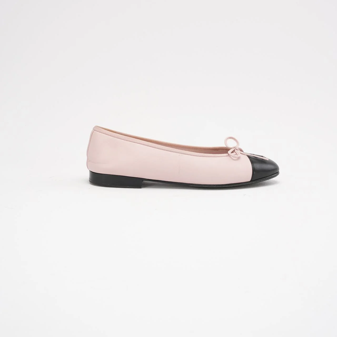 Chanel Pink / Black Quilted Leather CC Ballet Flats Size 38