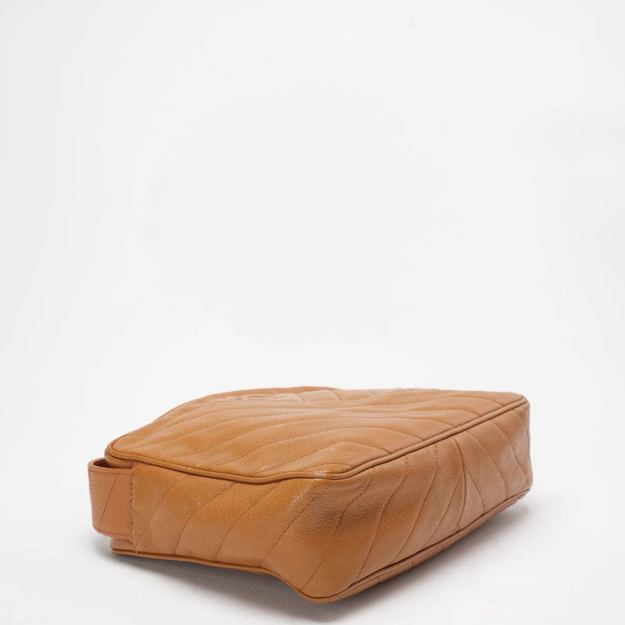 Chanel Vintage Caramel Caviar Diagonal Crossbody Bag