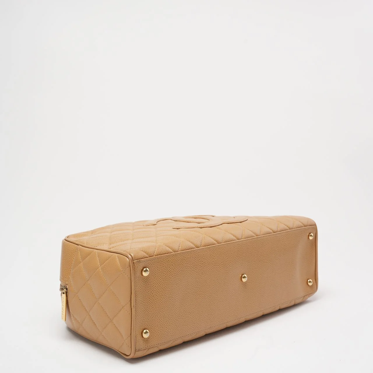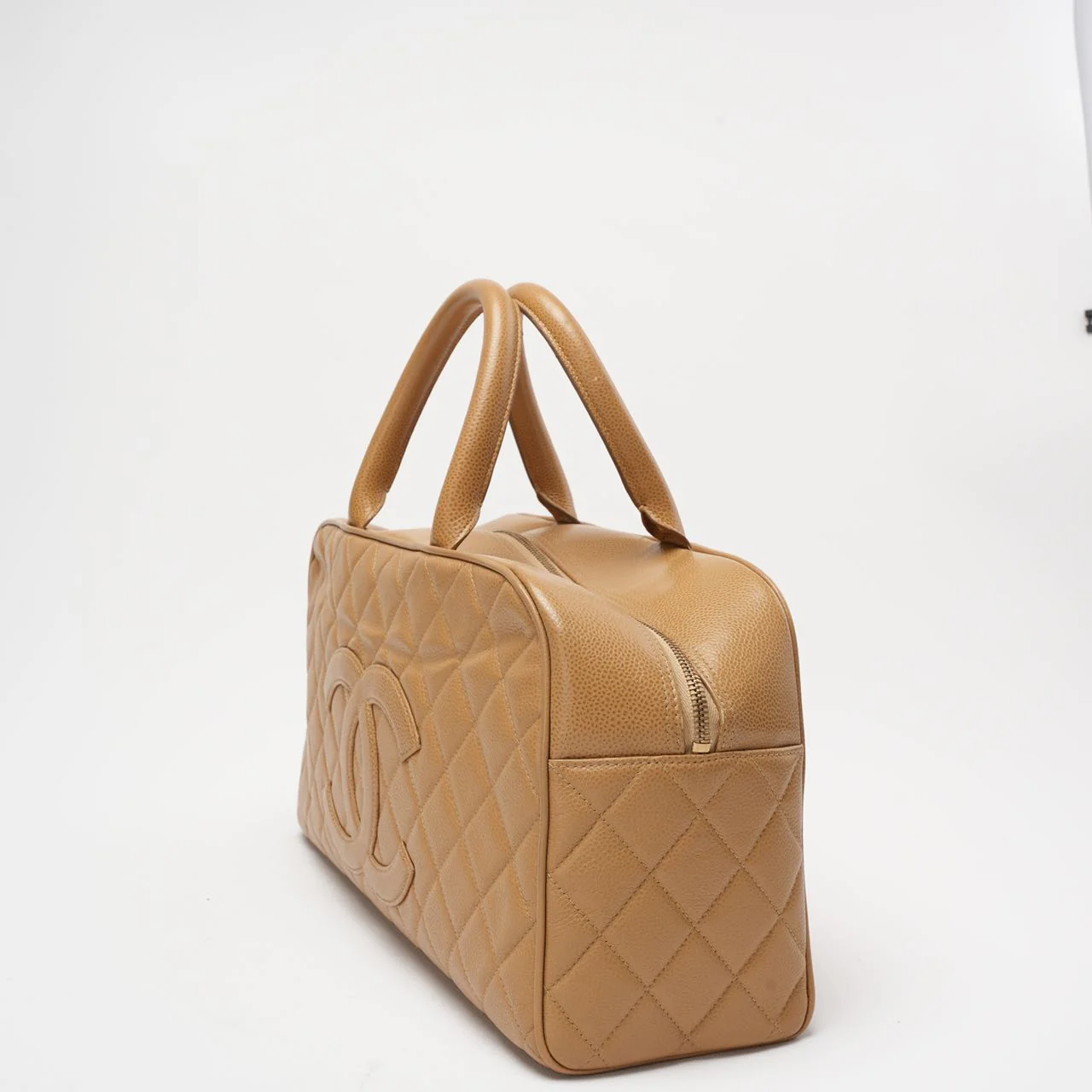 Chanel Vintage Bowler Handbag Beige Caviar Leather