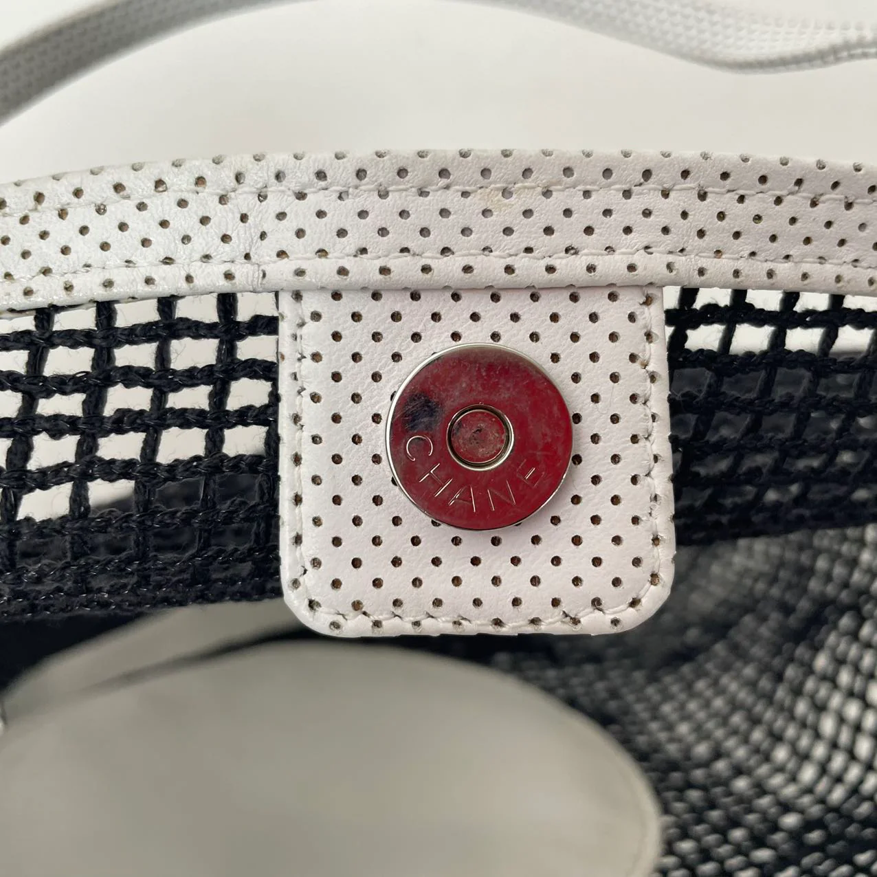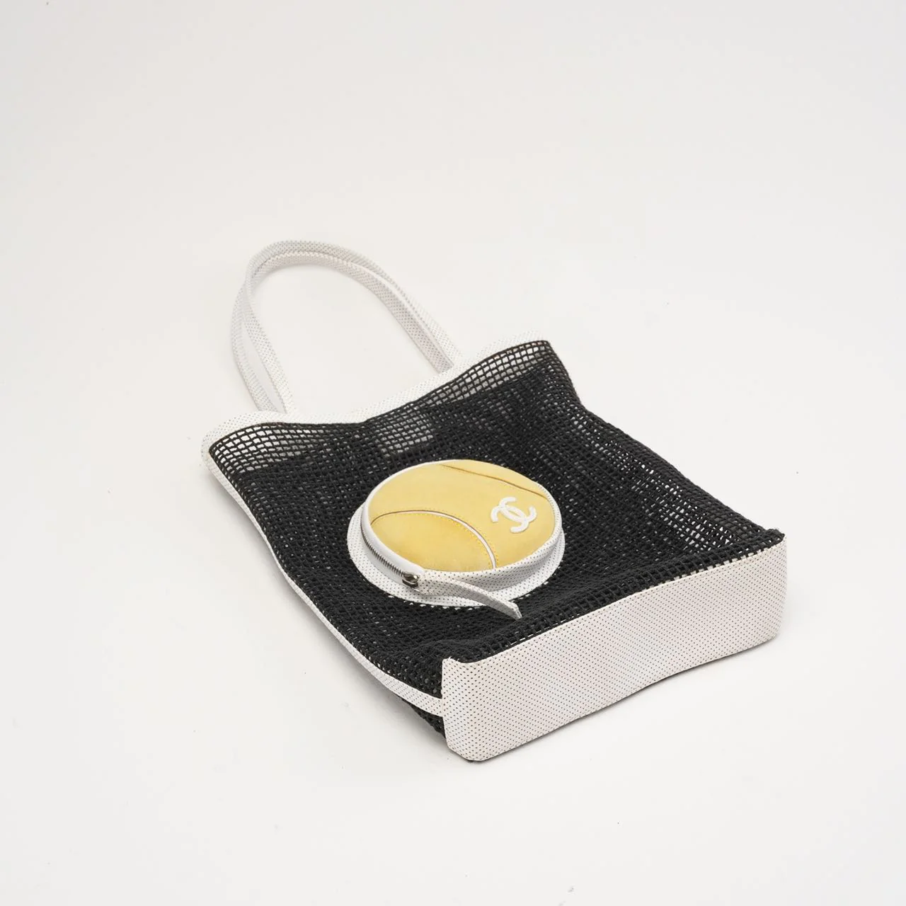 Chanel Vintage Tennis Shopper Tote Bag Black / White 2004