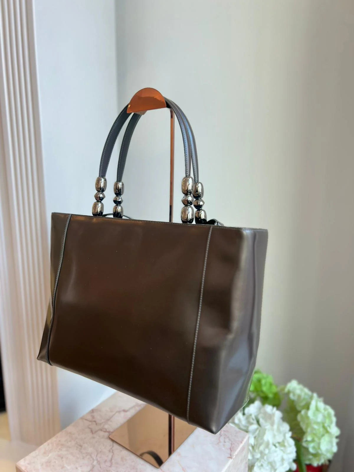 A rare and highly collectible Dior design, this 1999 Lady Malice Perla bag is crafted from glossy grey patent leather, showcasing the bold elegance of Dior’s late-1990s era. The structured, sculptural silhouette is instantly recognizable, reflecting the House’s avant-garde yet feminine aesthetic.