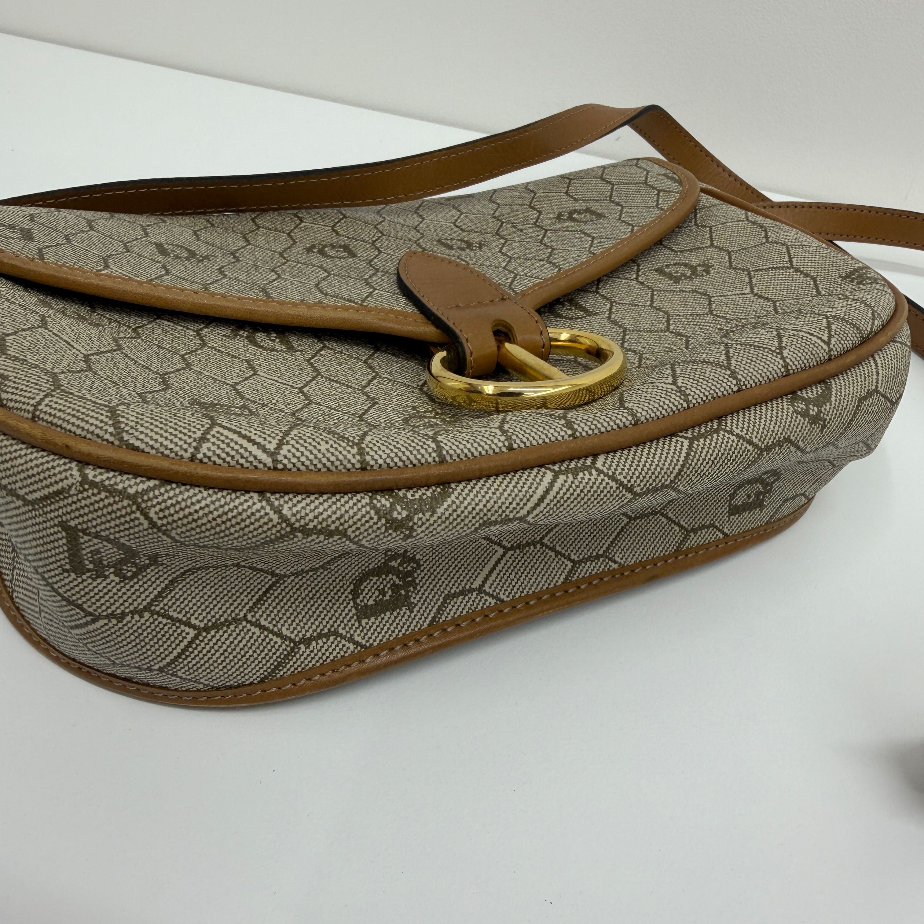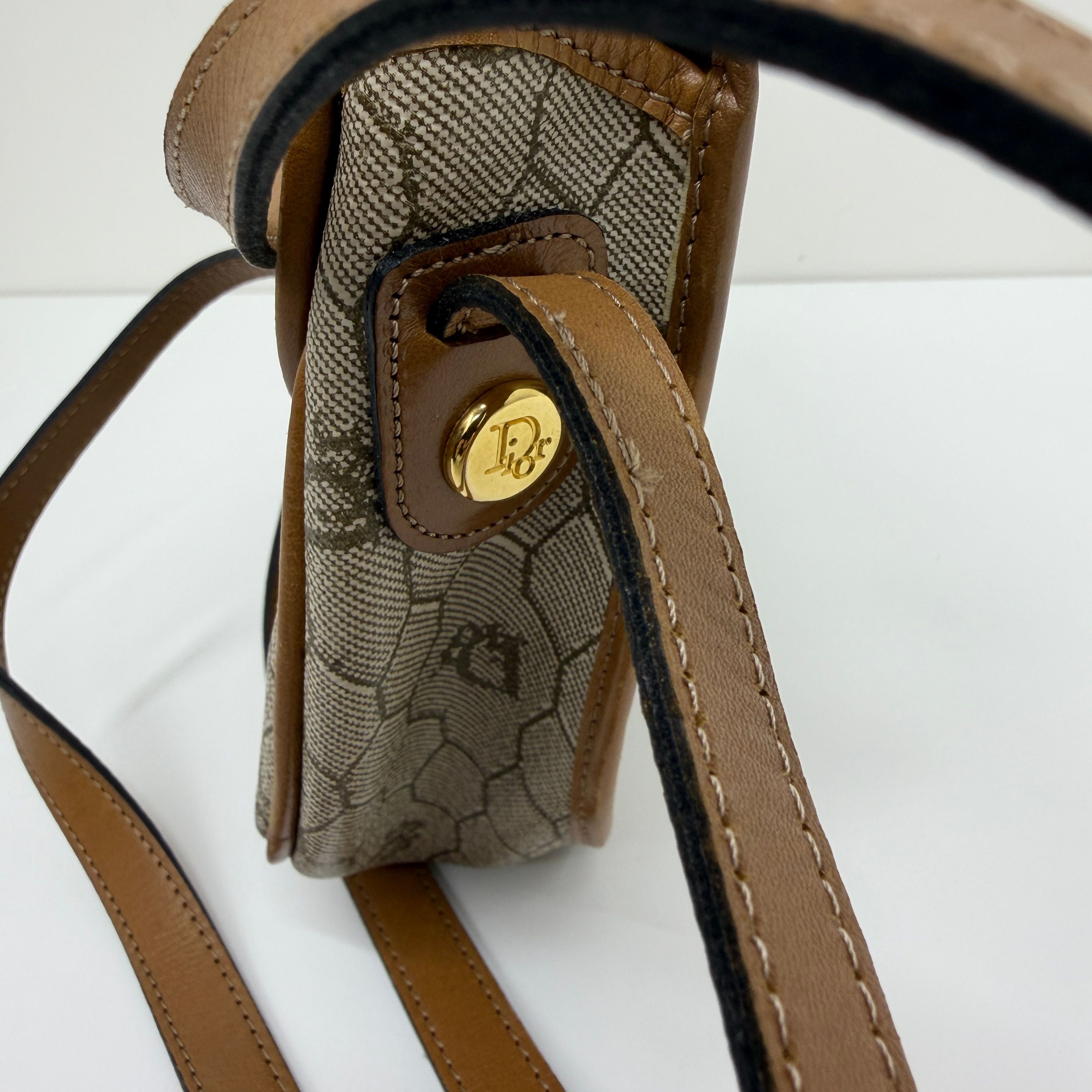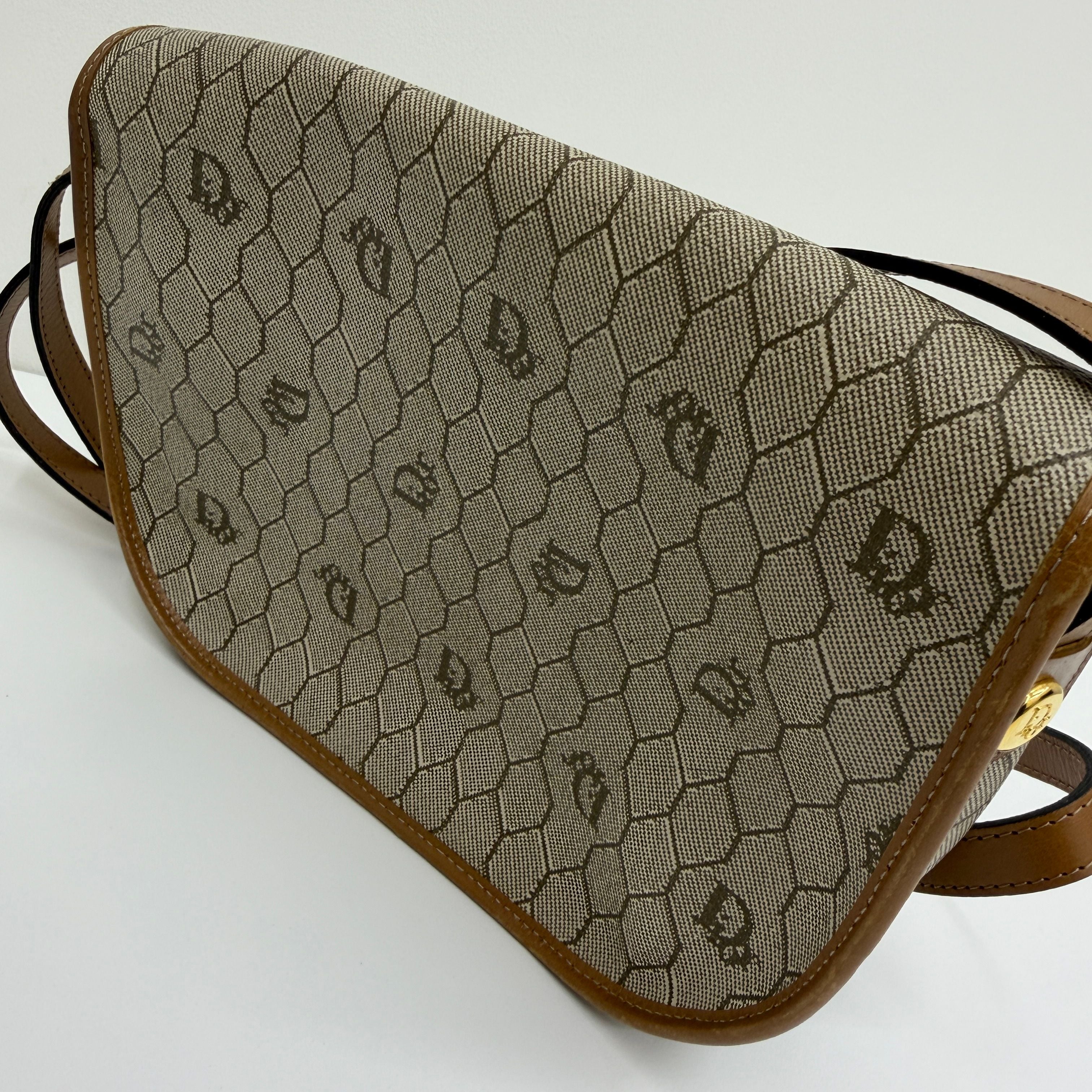 CHRISTIAN DIOR Logo Honeycomb Shoulder Bag PVC Leather Brown di0220bb