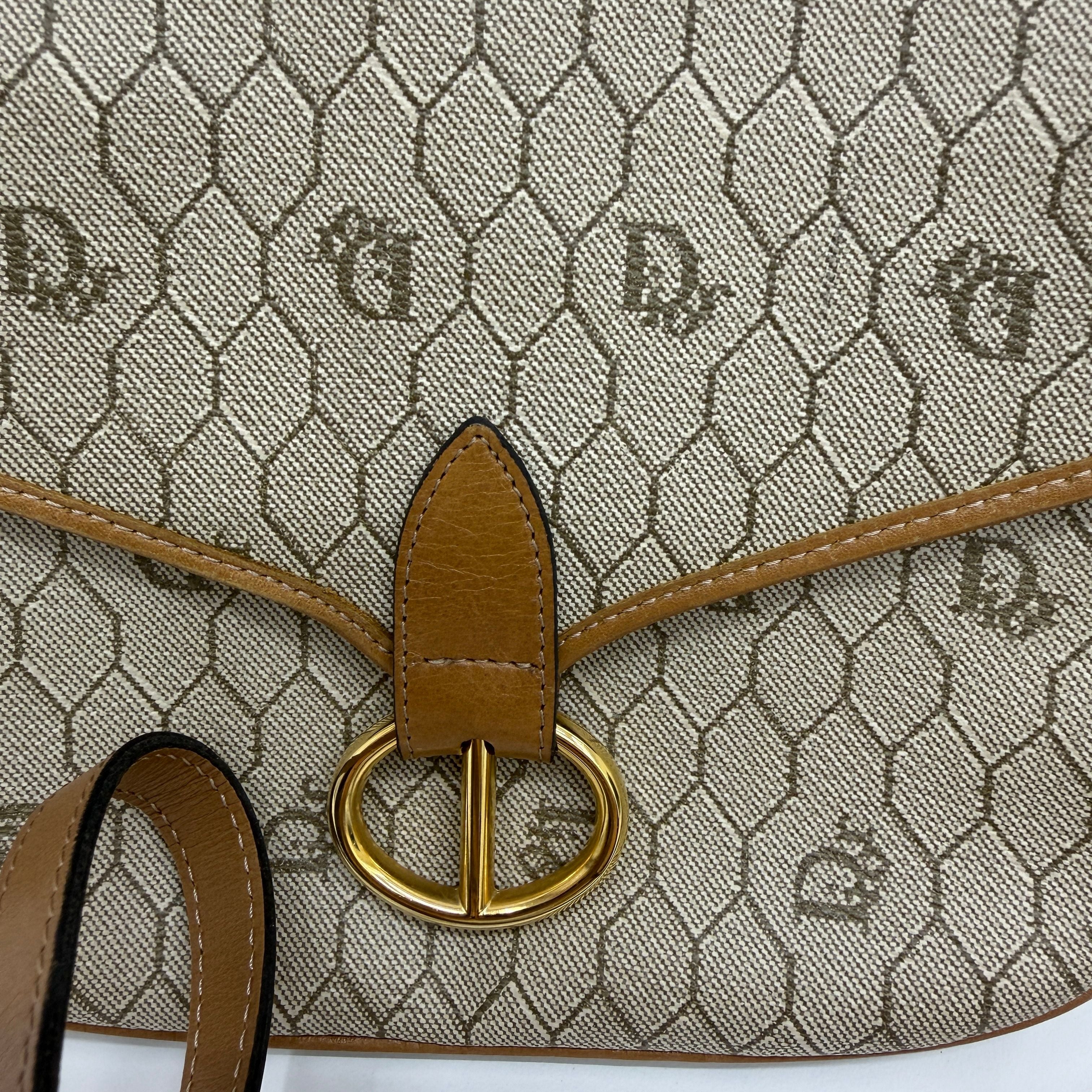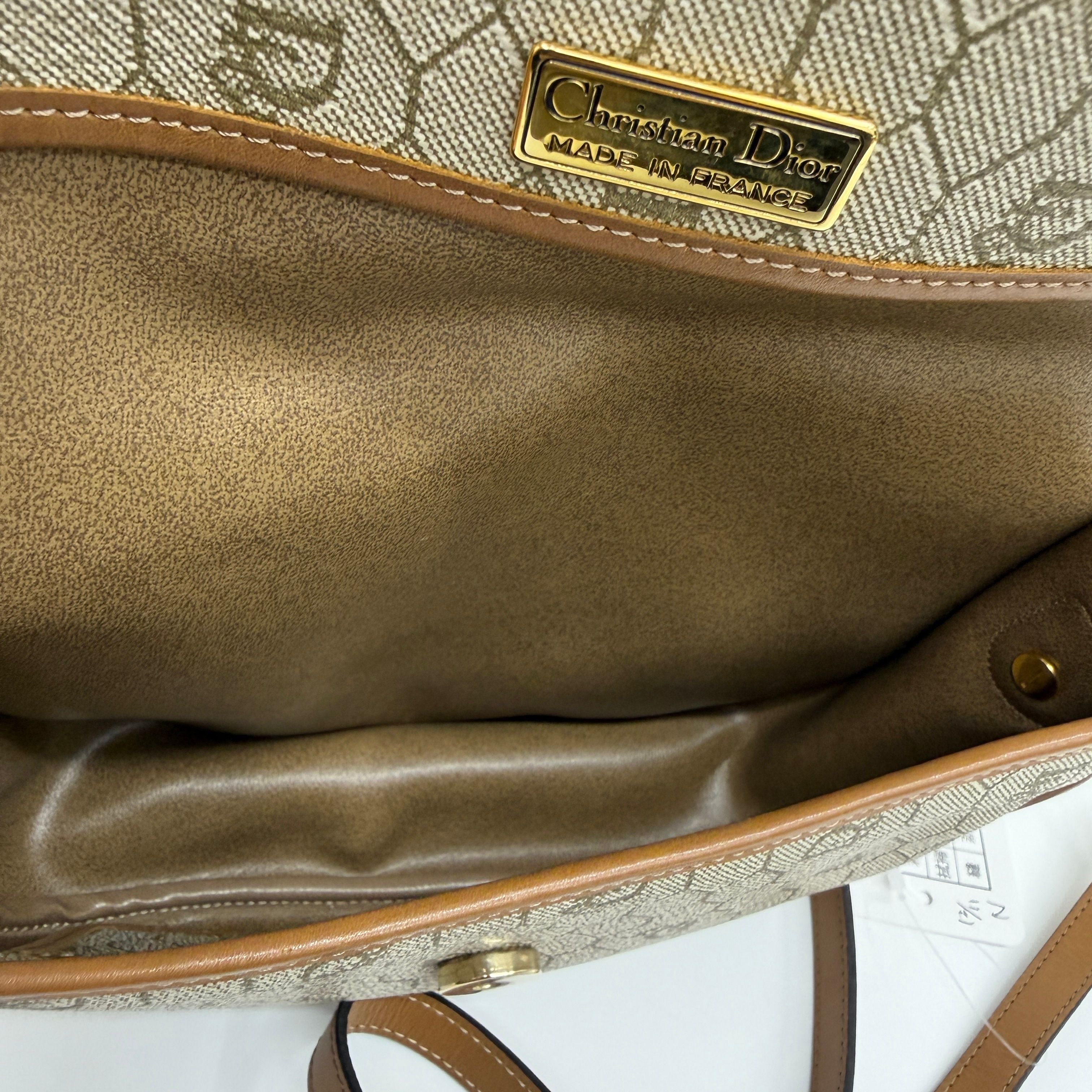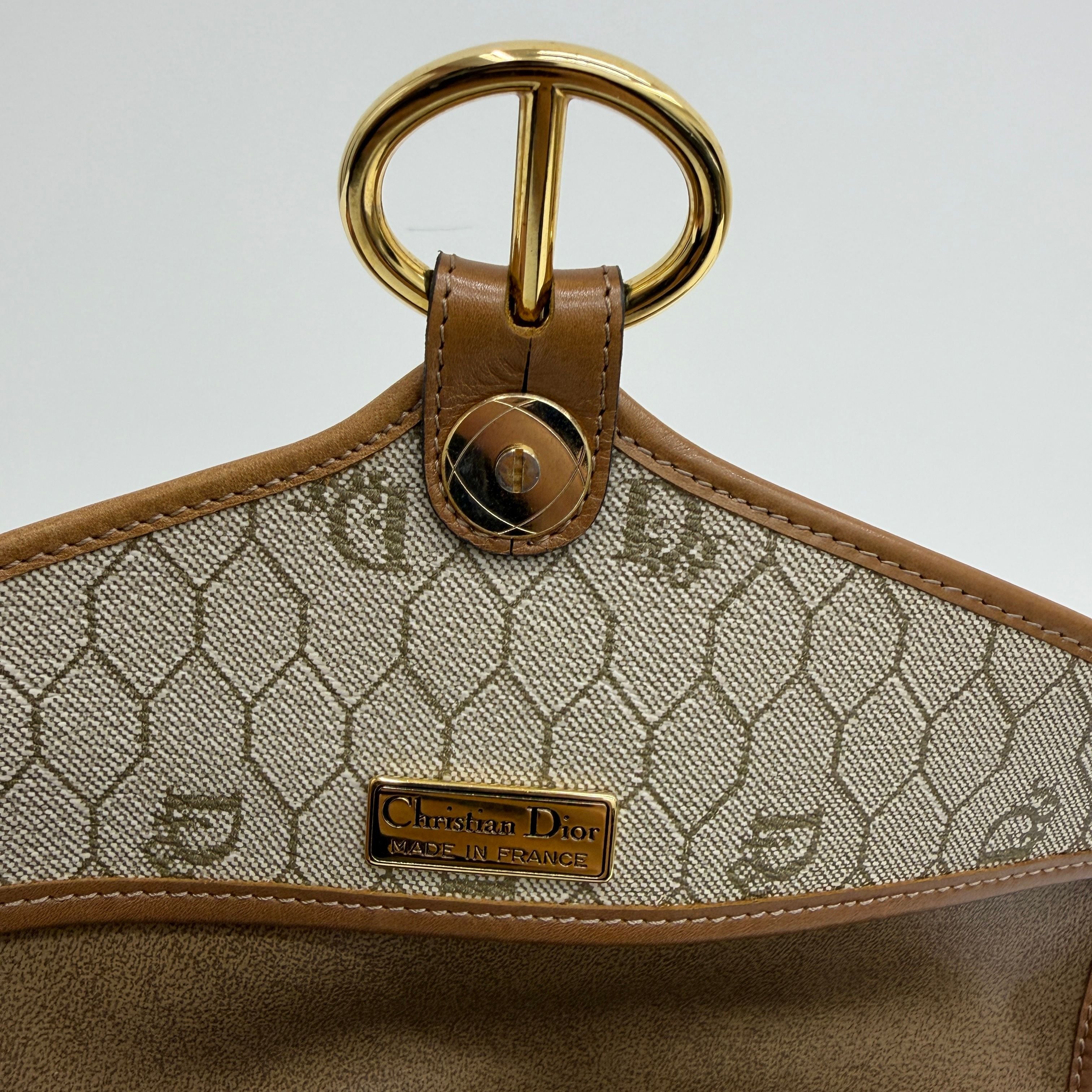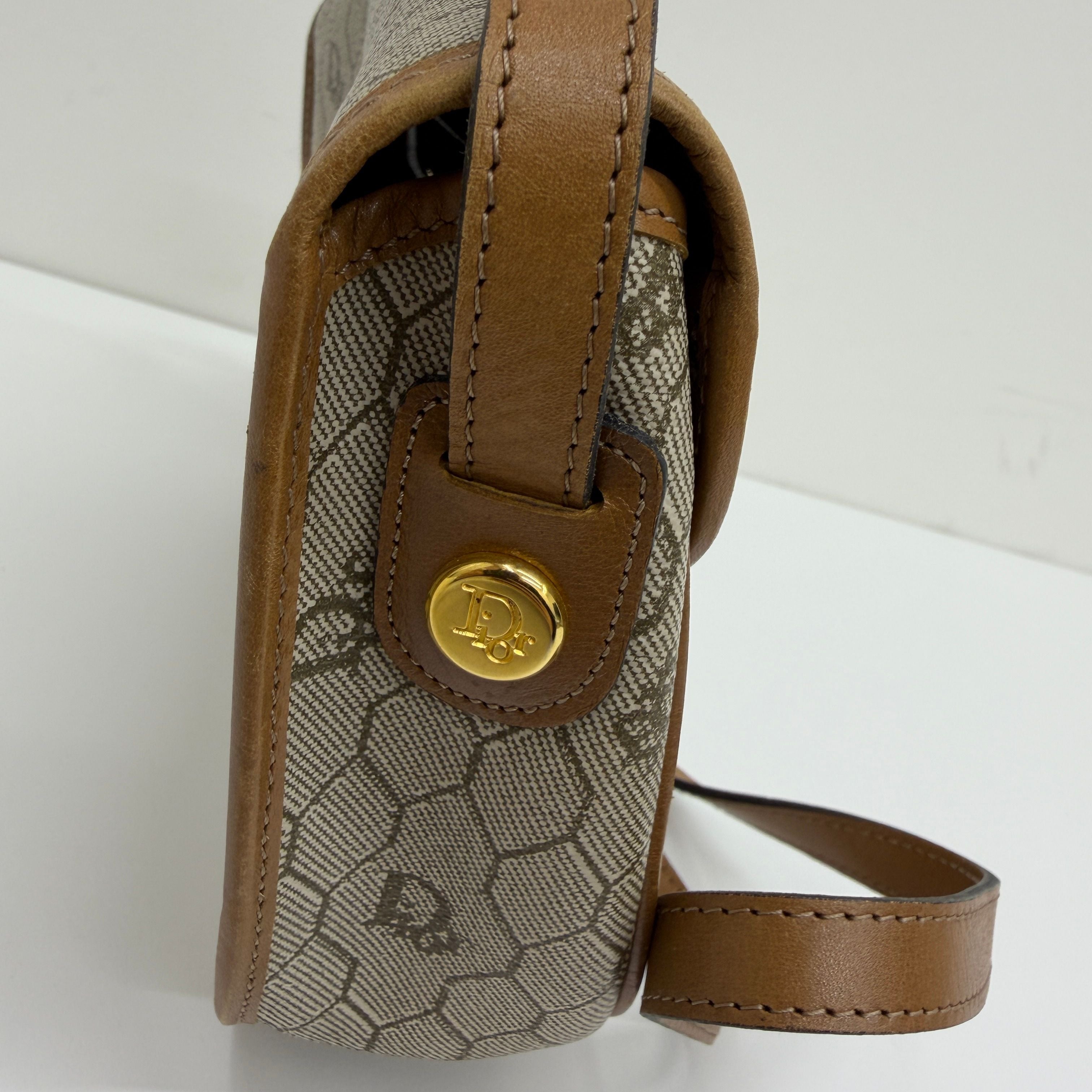 CHRISTIAN DIOR Logo Honeycomb Shoulder Bag PVC Leather Brown di0220bb