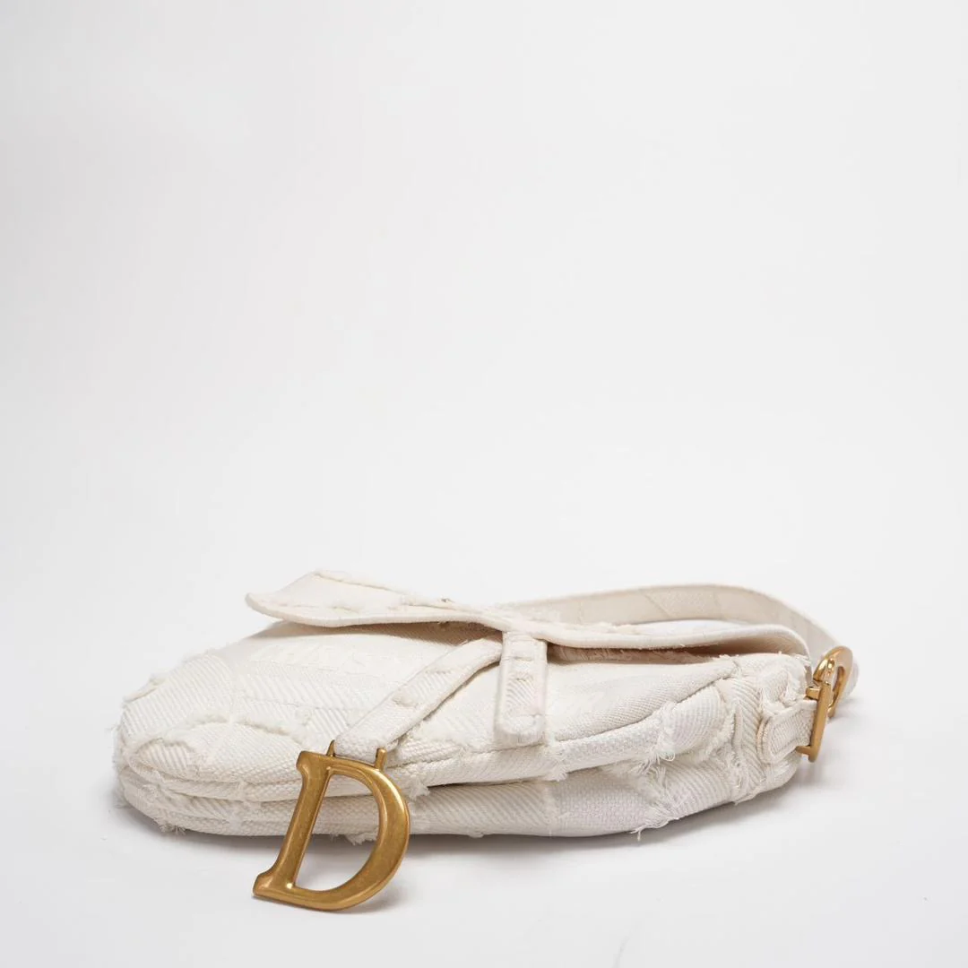 The Christian Dior Saddle Bag in White Canvas with Gold Hardware is a timeless piece that epitomizes the elegance and innovation of Dior's design legacy. Originally introduced by John Galliano in 1999, the Saddle Bag quickly became an iconic accessory, celebrated for its unique silhouette inspired by equestrian saddles. This particular pre-loved version offers a blend of classic style and sustainable fashion, allowing you to own a piece of history while making an eco-conscious choice.