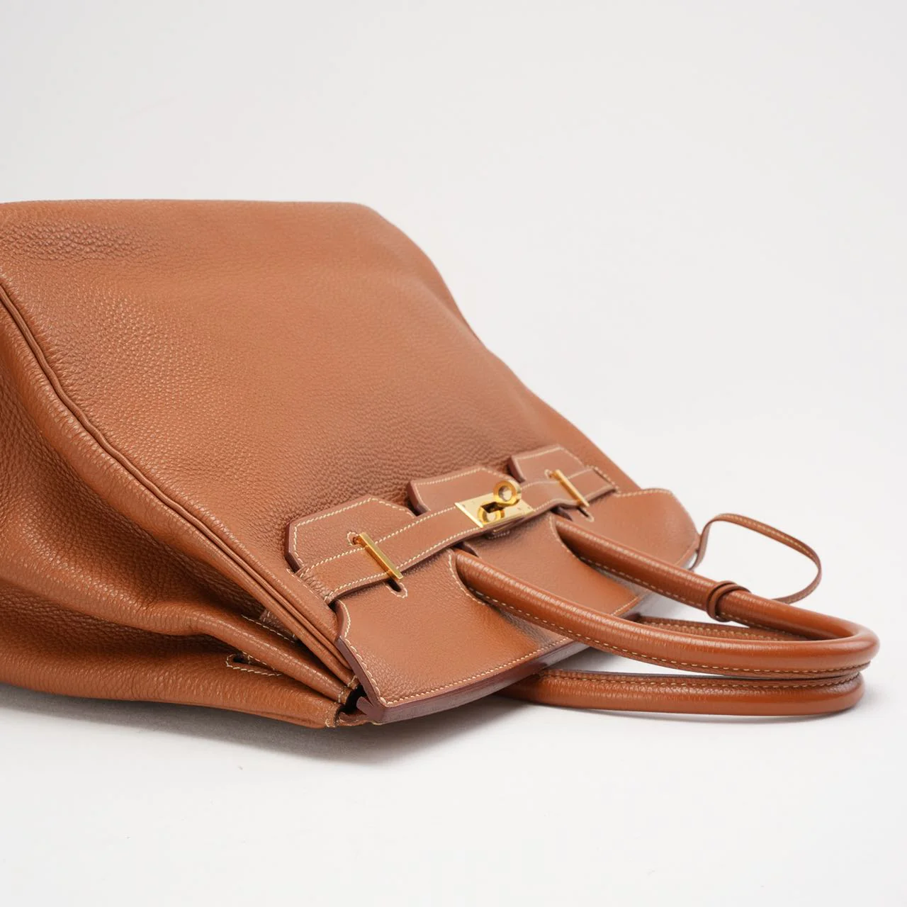 This iconic Hermès Birkin 35 in golden Togo leather with gold hardware was produced in 2000. Crafted from durable, grained Togo leather, it features the signature structured silhouette and a spacious interior ideal for daily essentials. Elegant and timeless, the Birkin remains one of the most coveted handbags, showcasing Hermès’ exceptional craftsmanship.