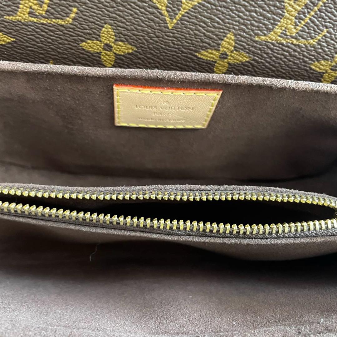 With its versatile design, you can wear it as a chic clutch or attach it to a larger bag using the removable leather strap. This second-hand item is in excellent condition, showcasing minimal signs of wear, making it a fantastic addition to any wardrobe. Whether you're heading out for a casual day or a night on the town, the Pochette Accessoires is your go-to companion.