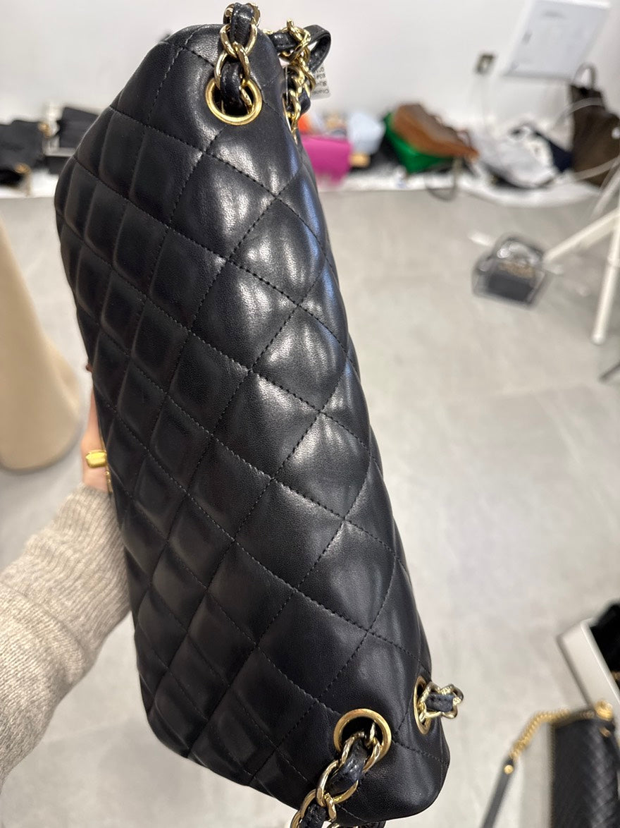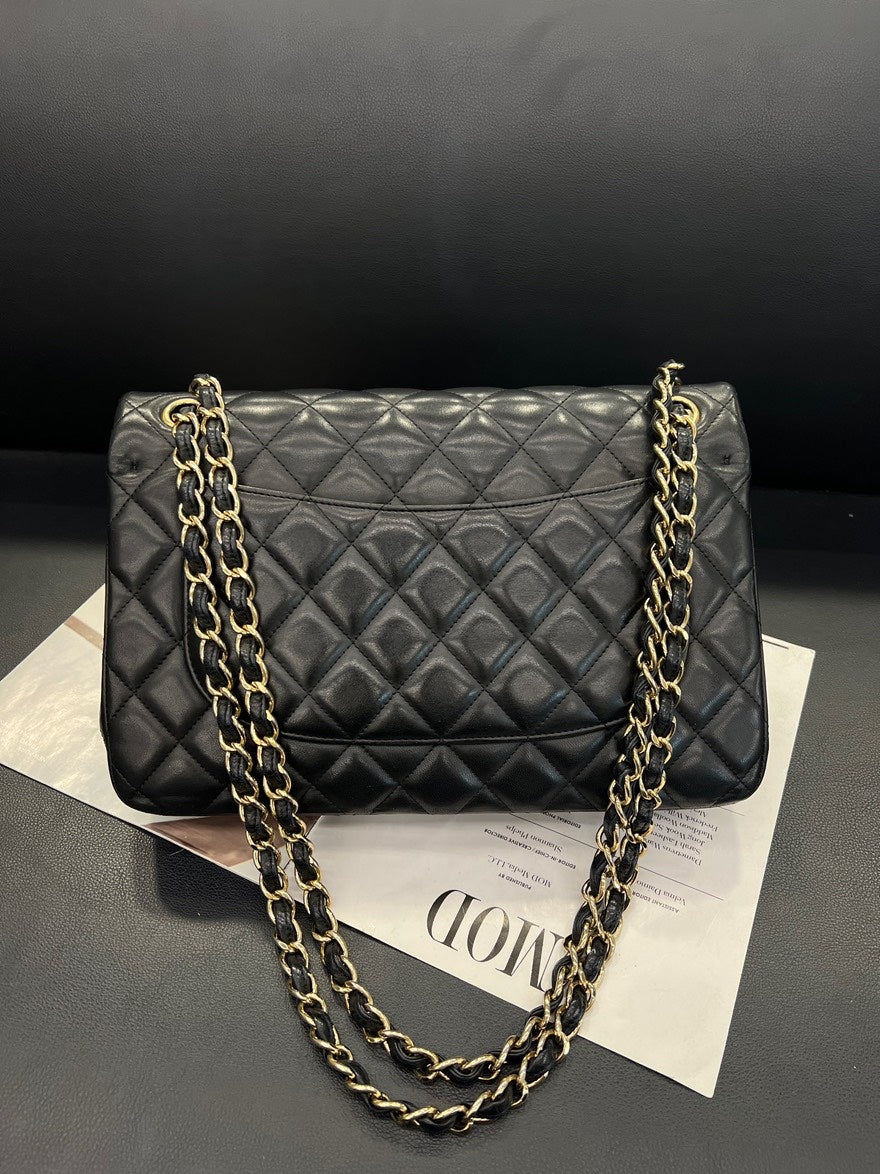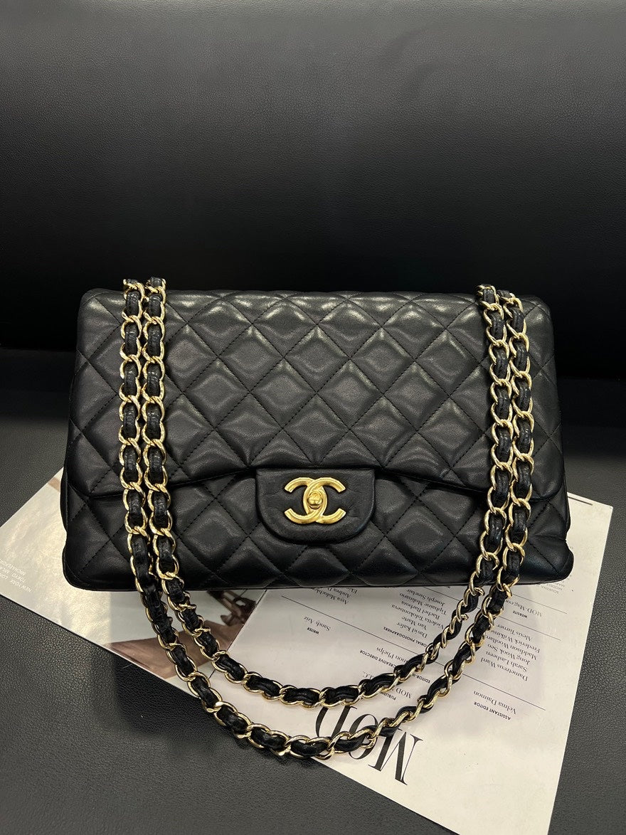 pre-loved🍒 Chanel Black Gold Double Flap Lambskin Jumbo, D463#