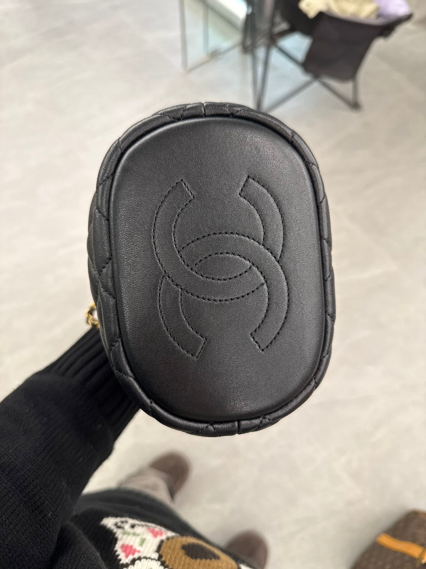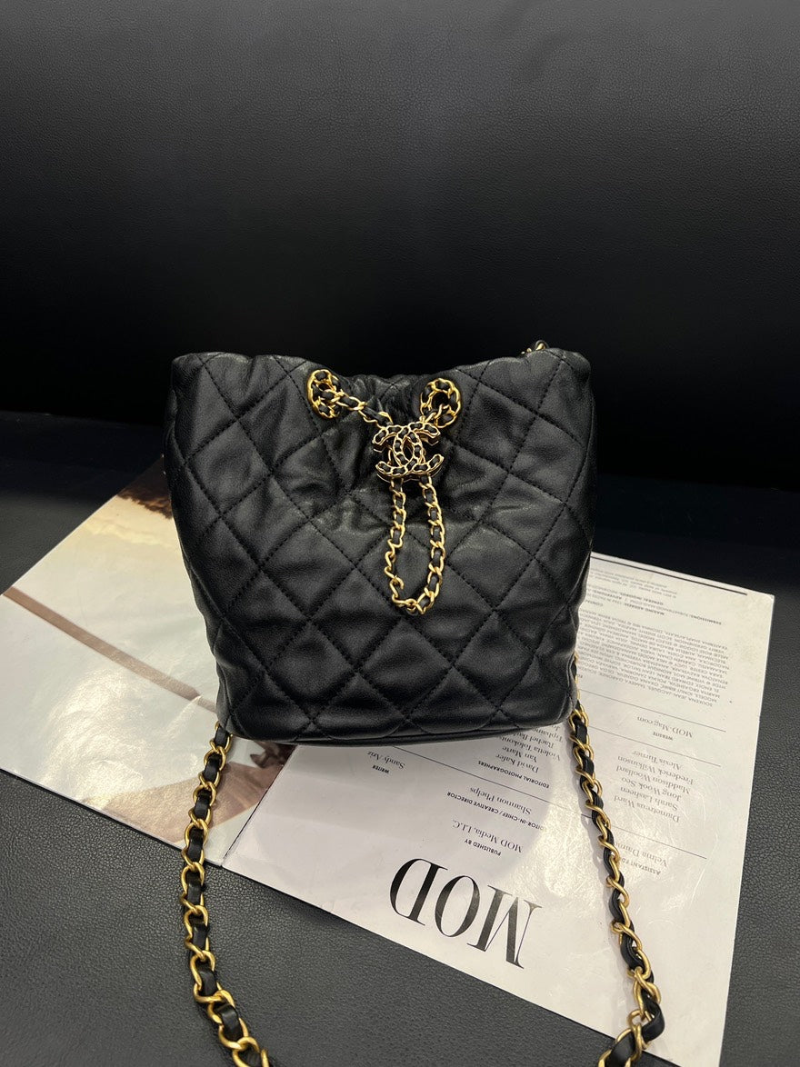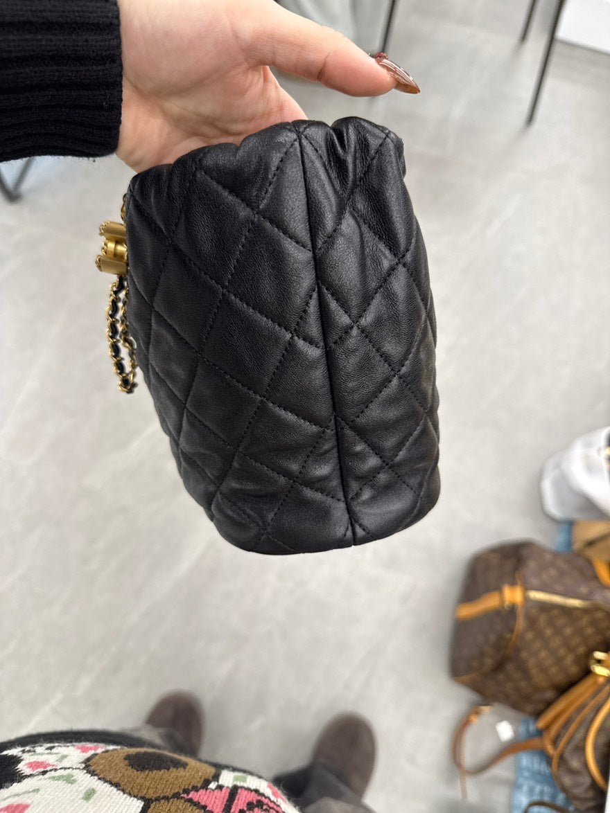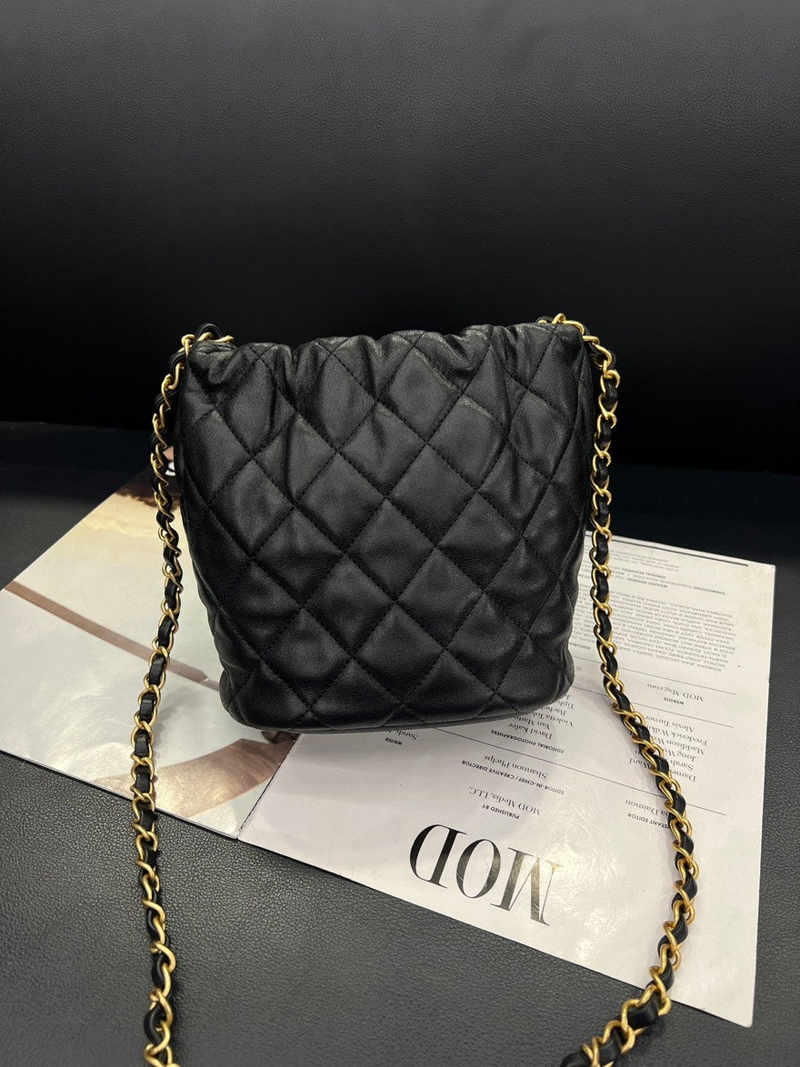 pre-loved🍒 Chanel Black Gold PM Drawstring Bucket Bag, B6883#