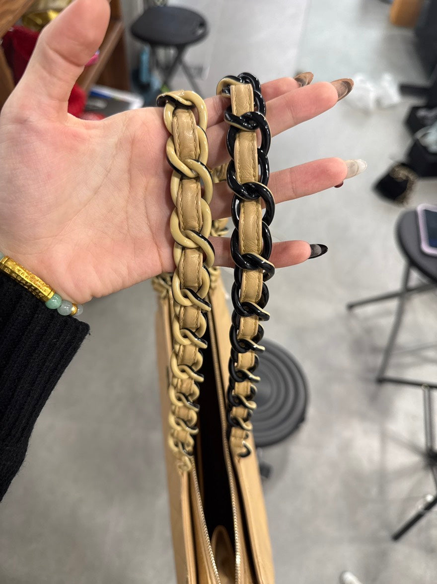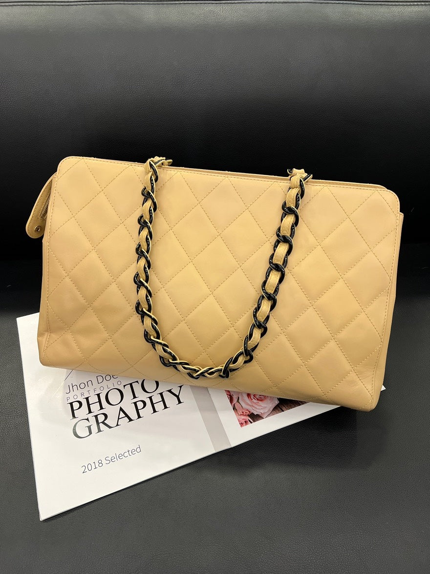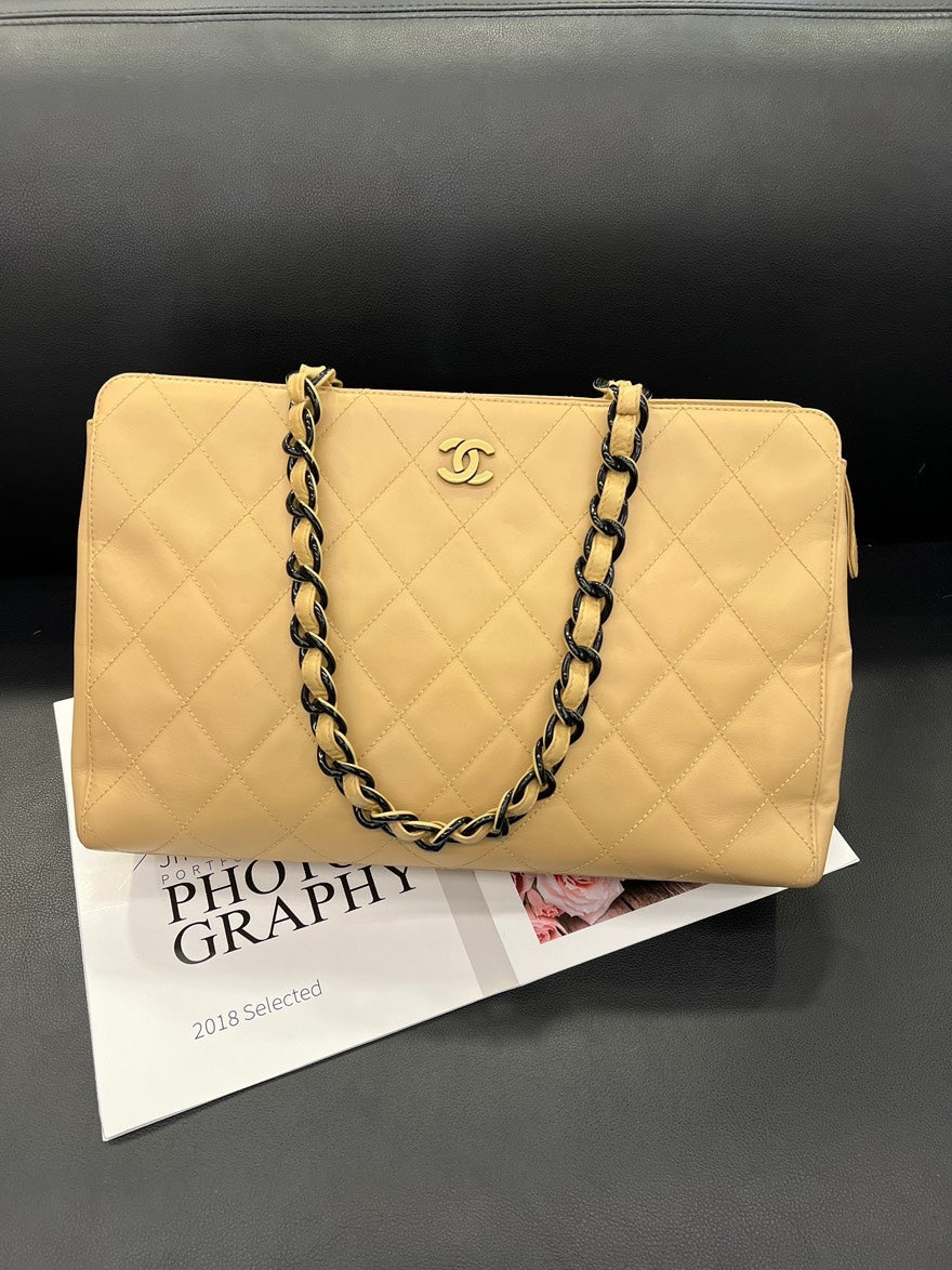 pre-loved🍒 Chanel Milk Tea Color Tote Shoulder Bag, B6654#