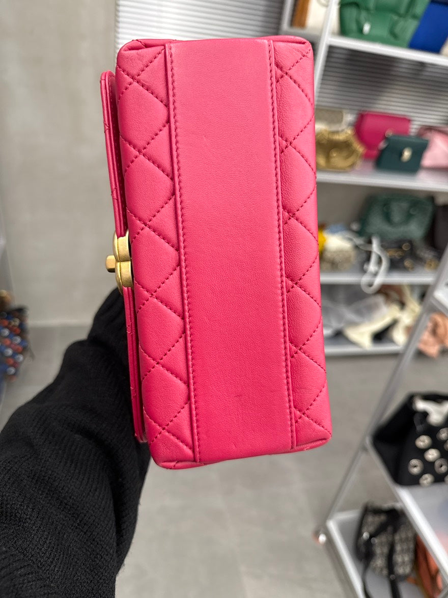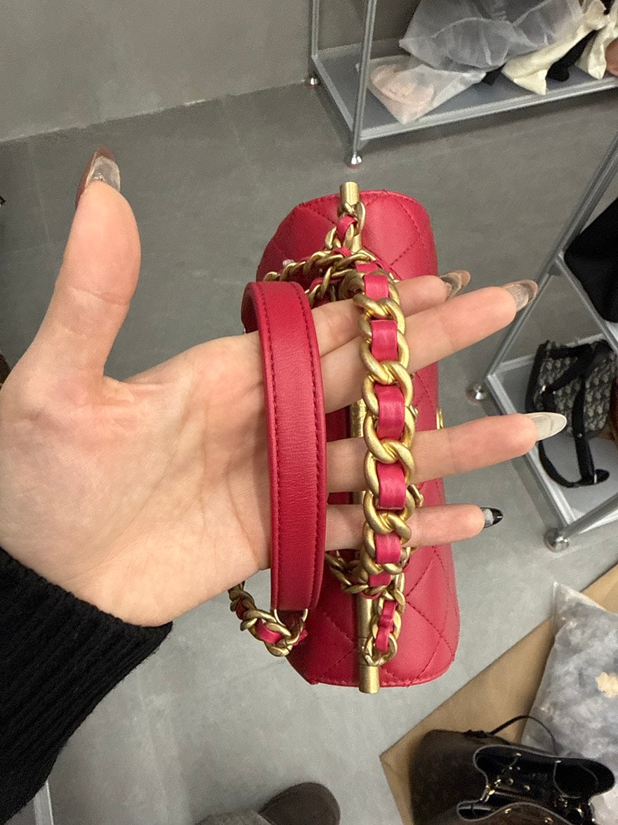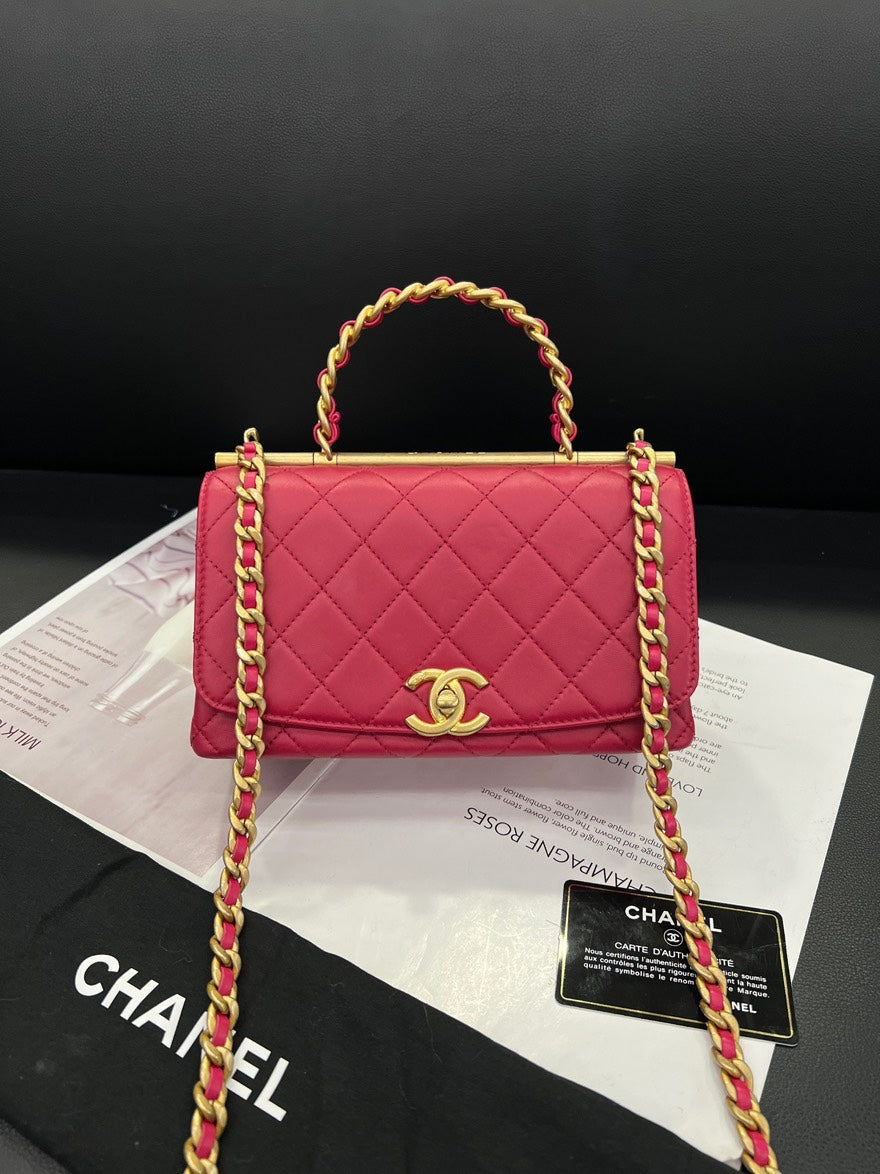 pre-loved🍒 Chanel Strawberry Red Handle Flap Bag, D204#