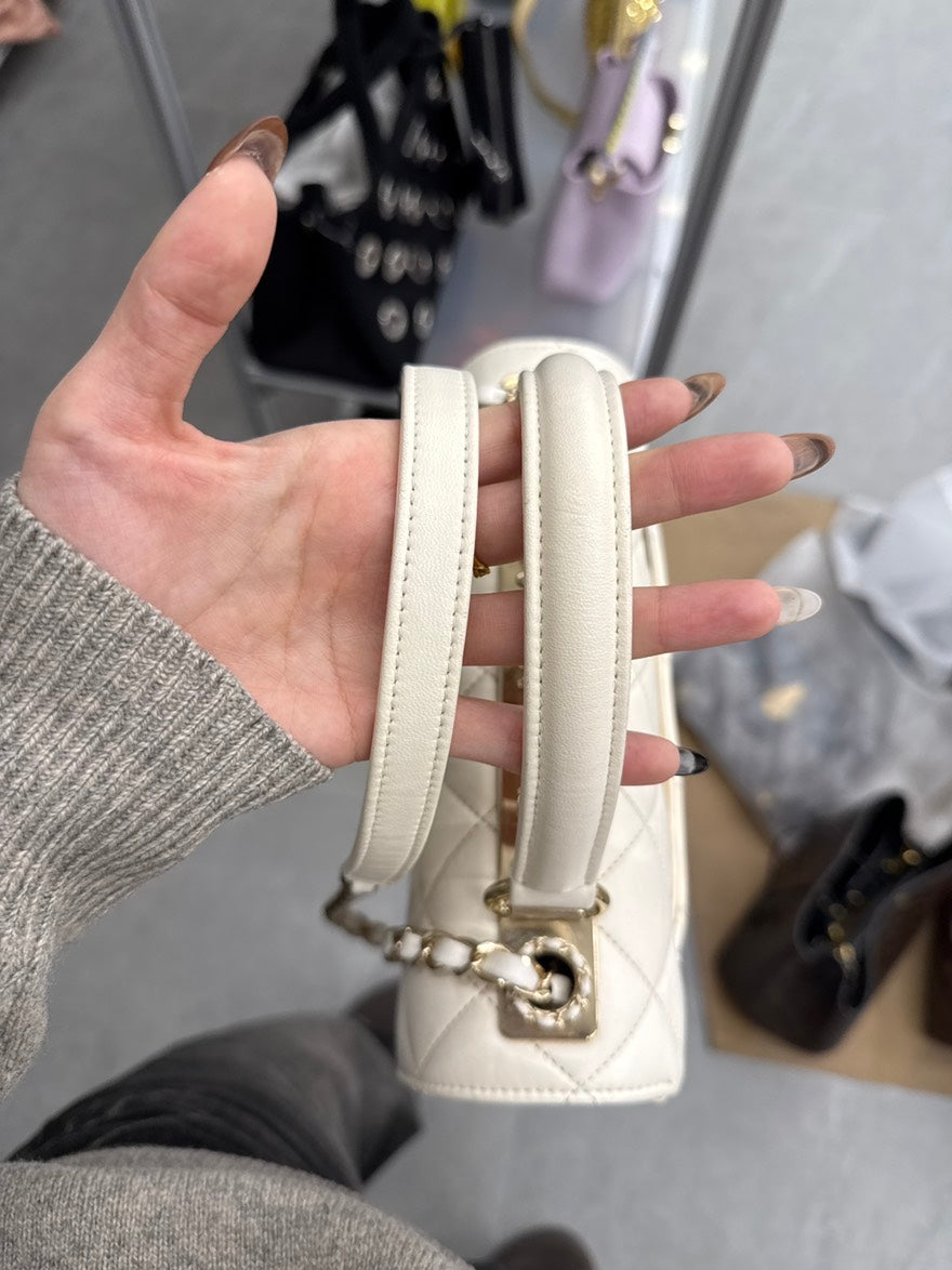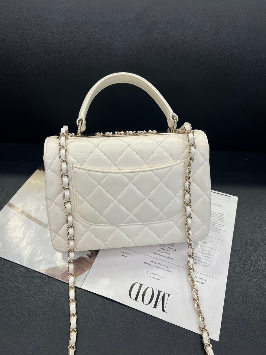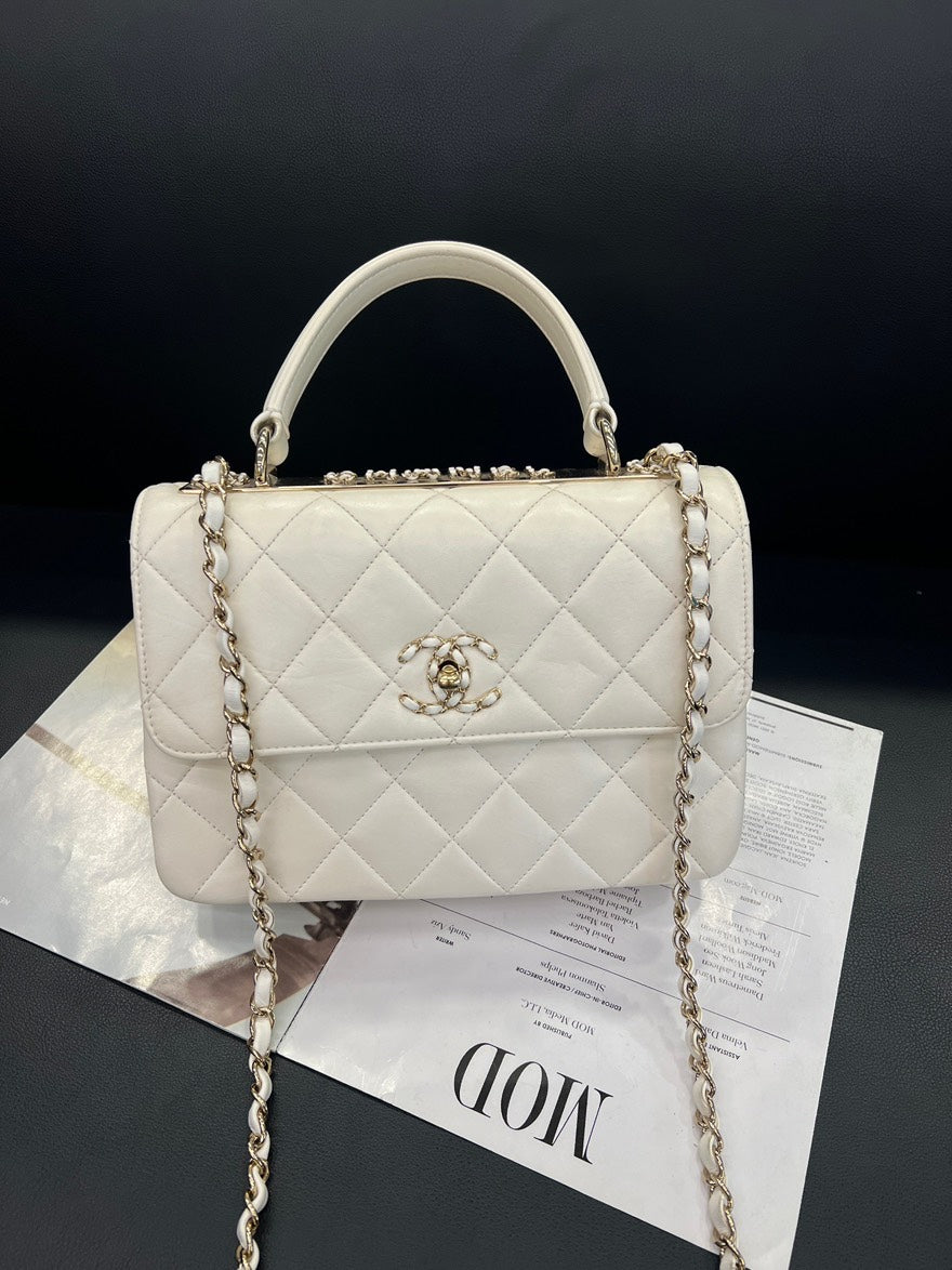 pre-loved🍒 Chanel White Gold Chip Trendy CC Crossbody Bag, D461#