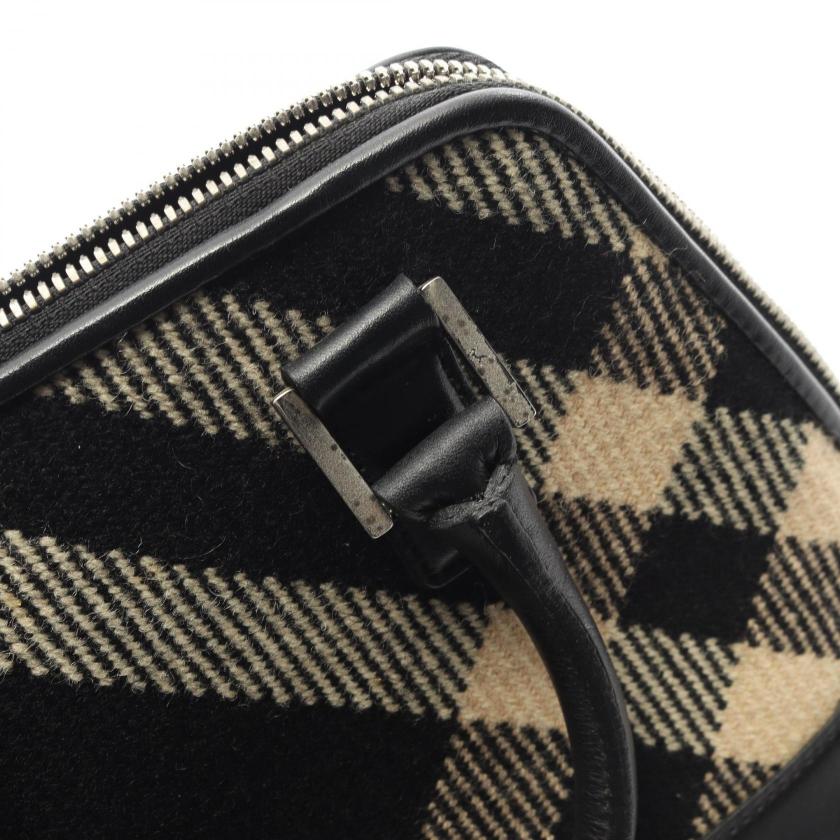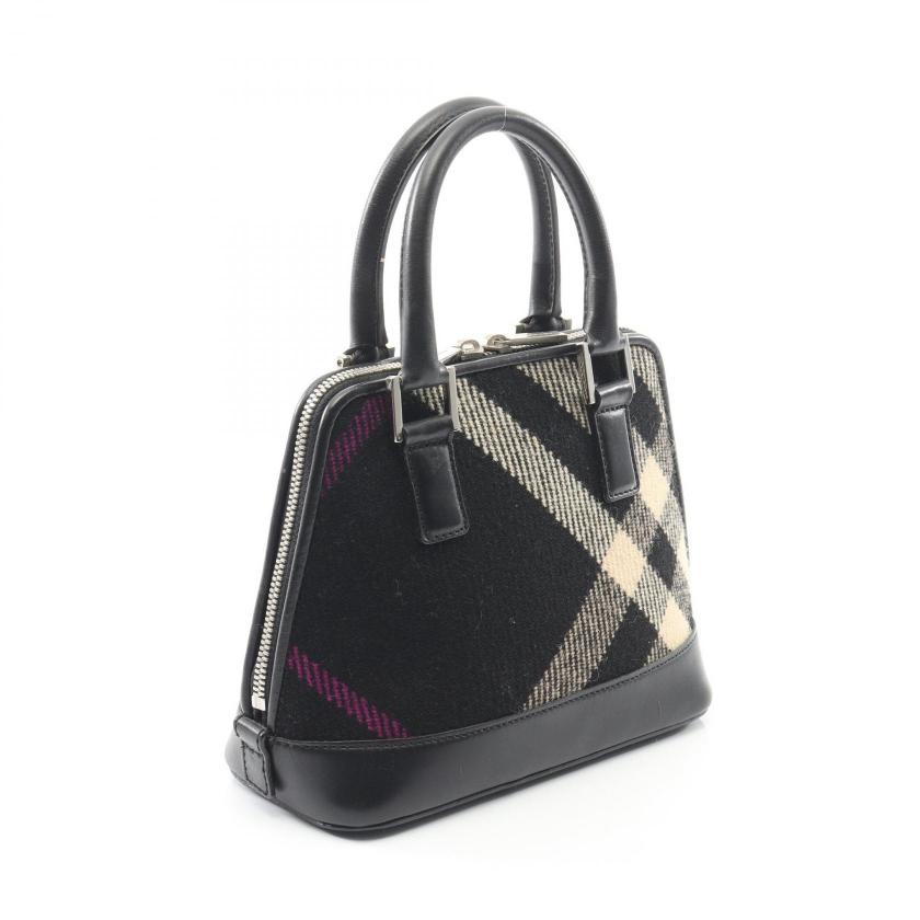 Pre-loved BURBERRY Handbag check wool leather black beige purple 2WAY 2101219400273