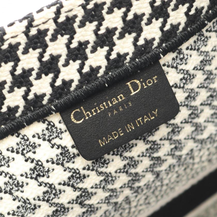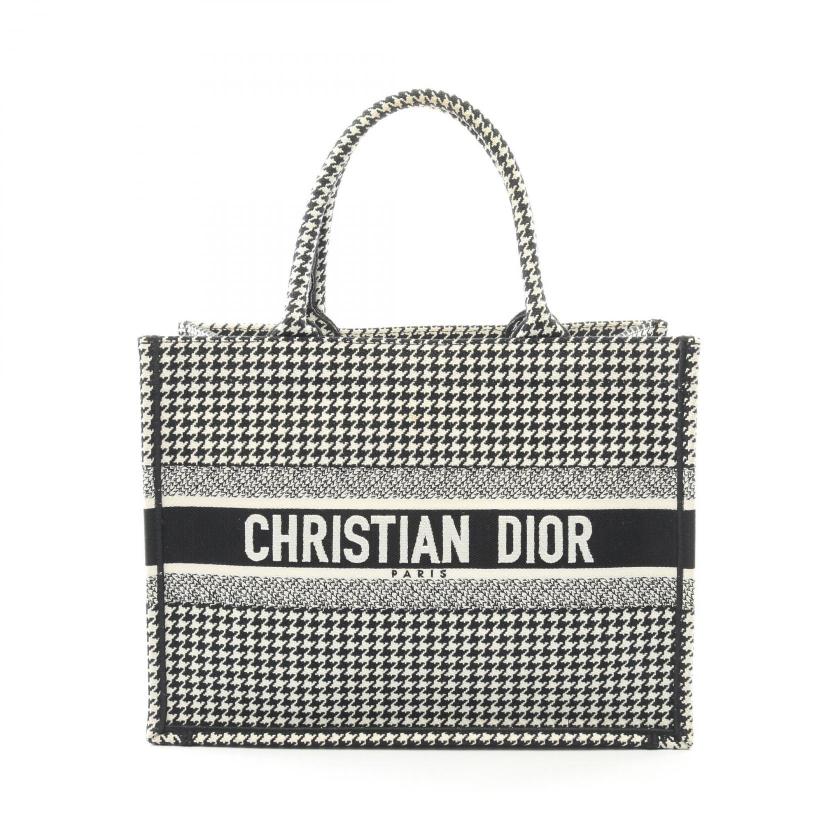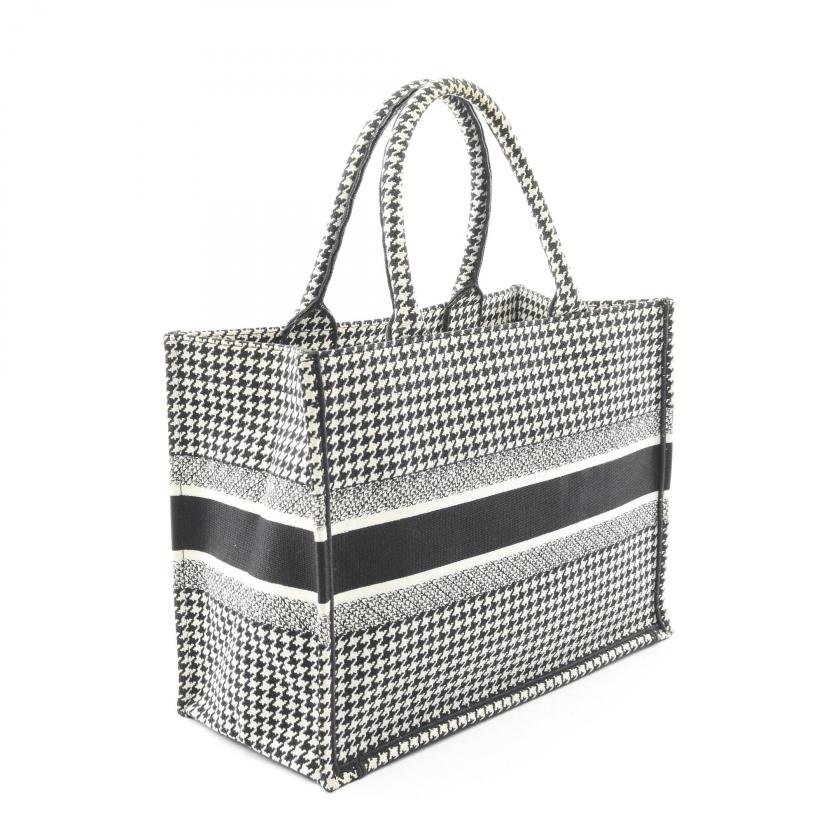 Pre-loved Christian Dior BOOK TOTE book tote Medium Handbag tote bag houndstooth canvas black ivory 2101219426068