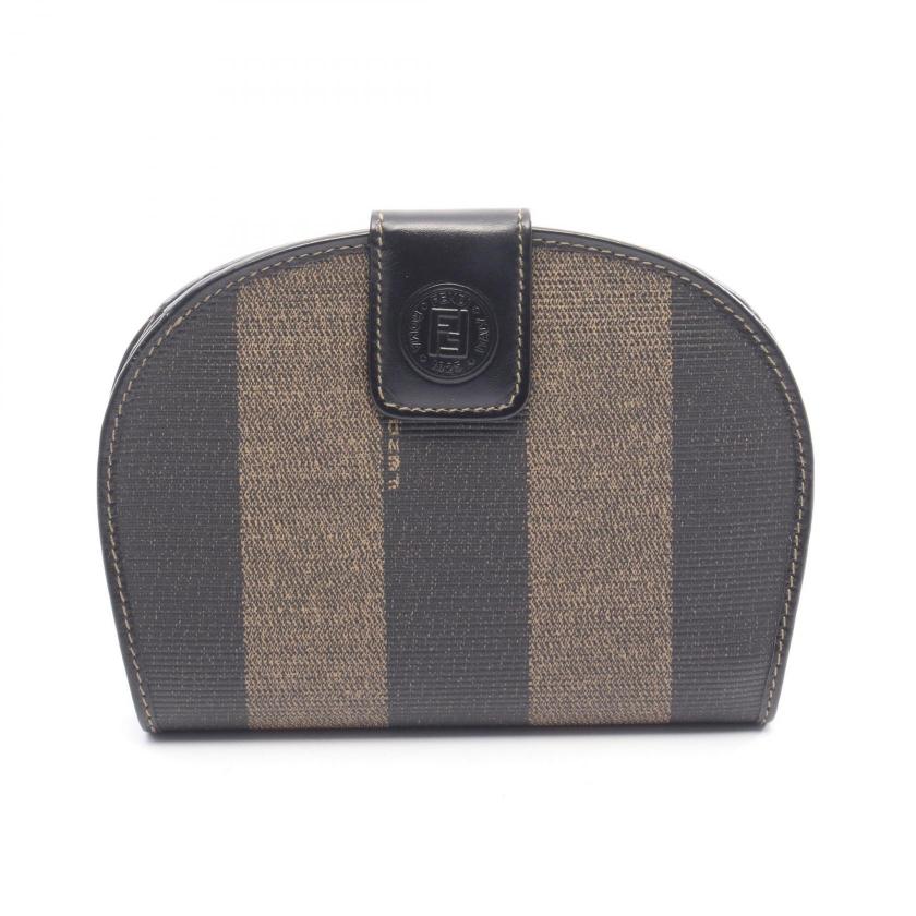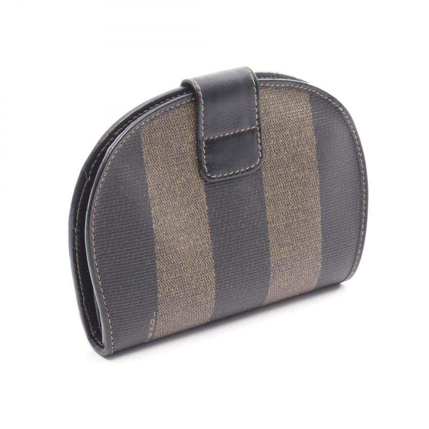 Pre-loved FENDI Pecan Bi-fold wallet PVC leather Brown black 2104102460477