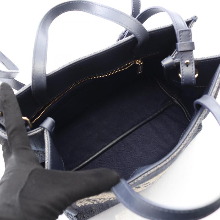 Pre-loved Salvatore Ferragamo Handbag logo denim leather Indigo blue 2WAY 2120900054151
