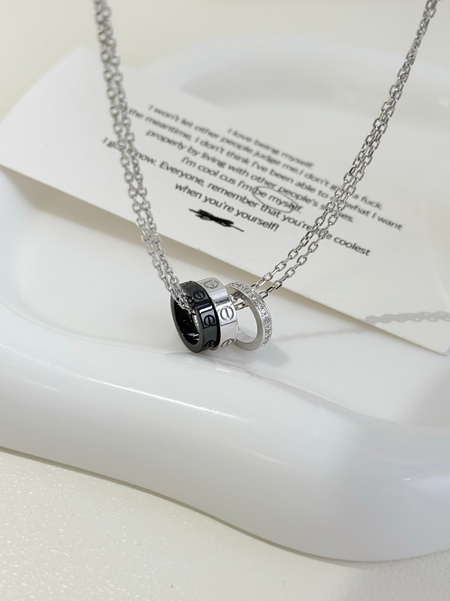 Preloved💕 Cartier 3 Ring Love Necklace, 18k White Gold & Diamond #16065