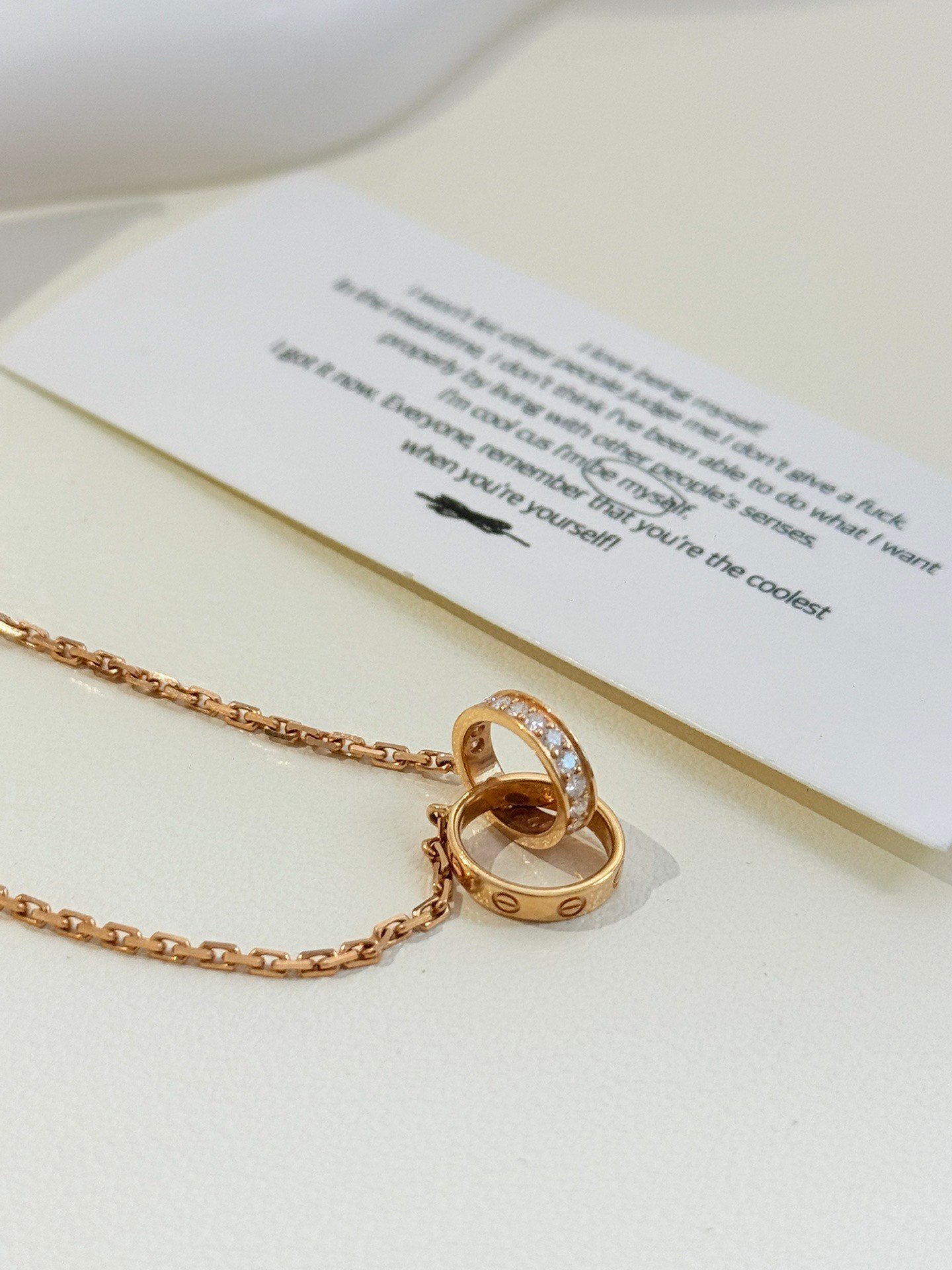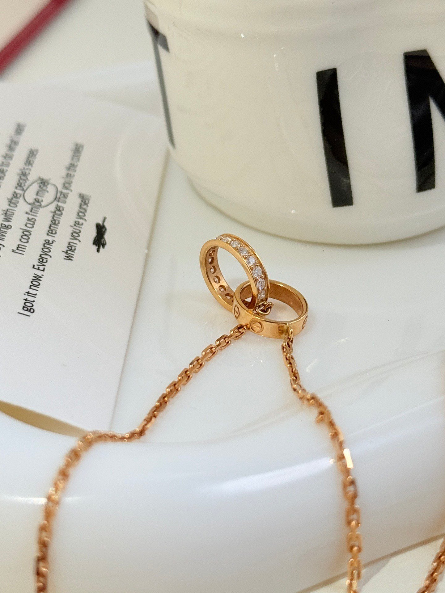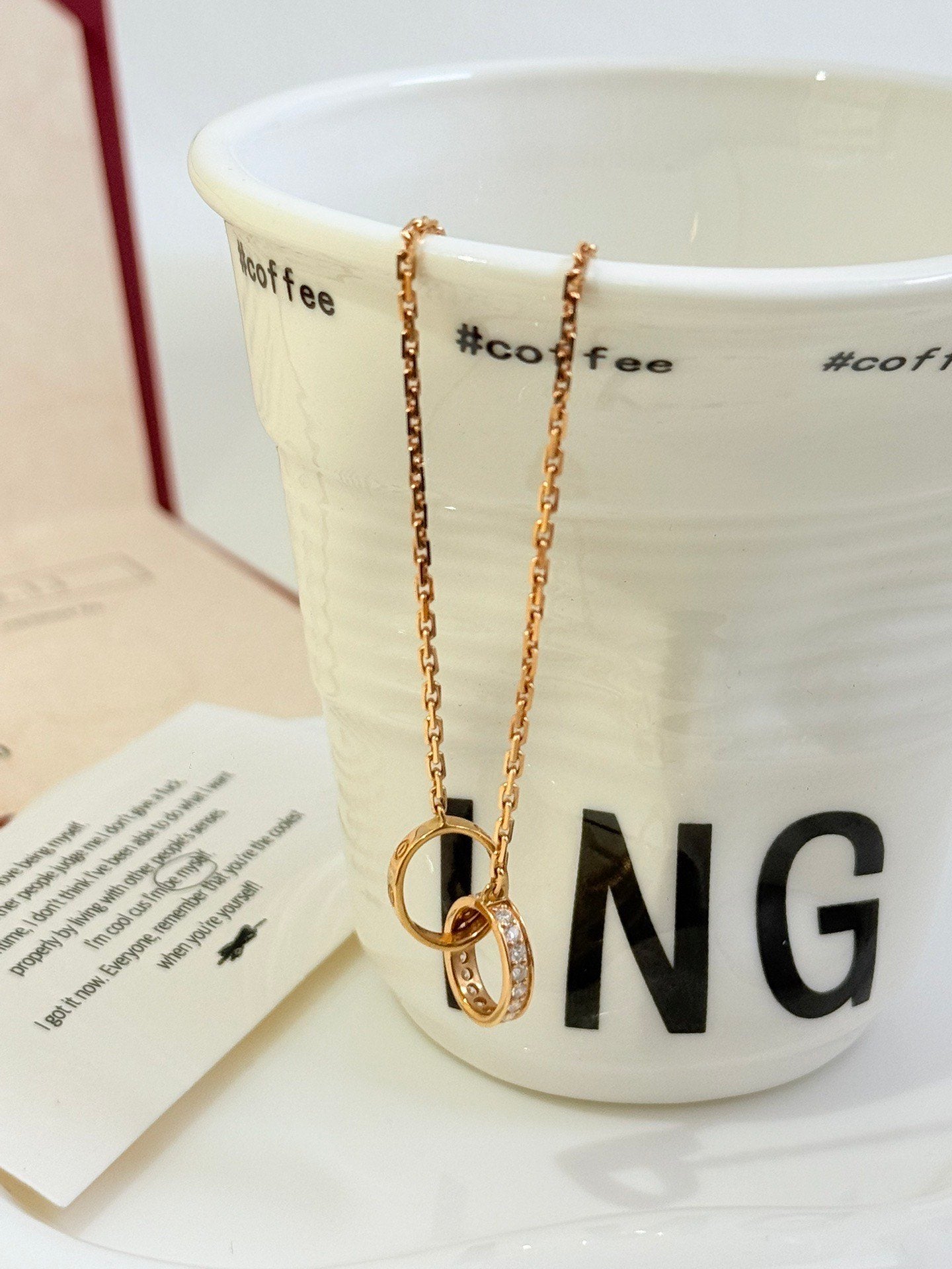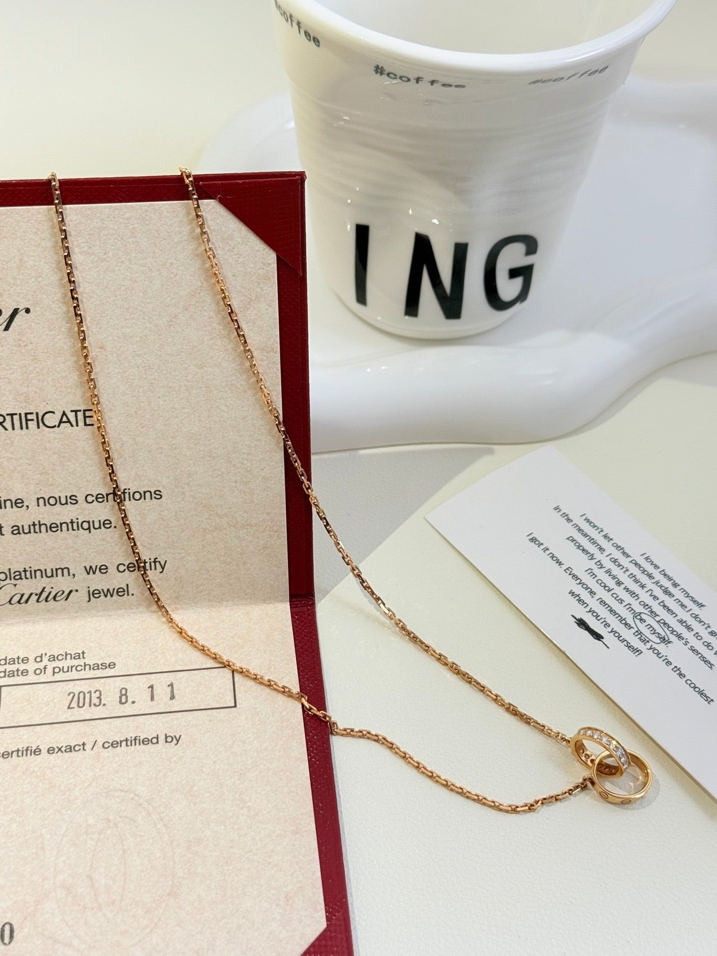 Preloved💕 Cartier Double Ring Necklace, 18k RoseGold & Diamonds #16117