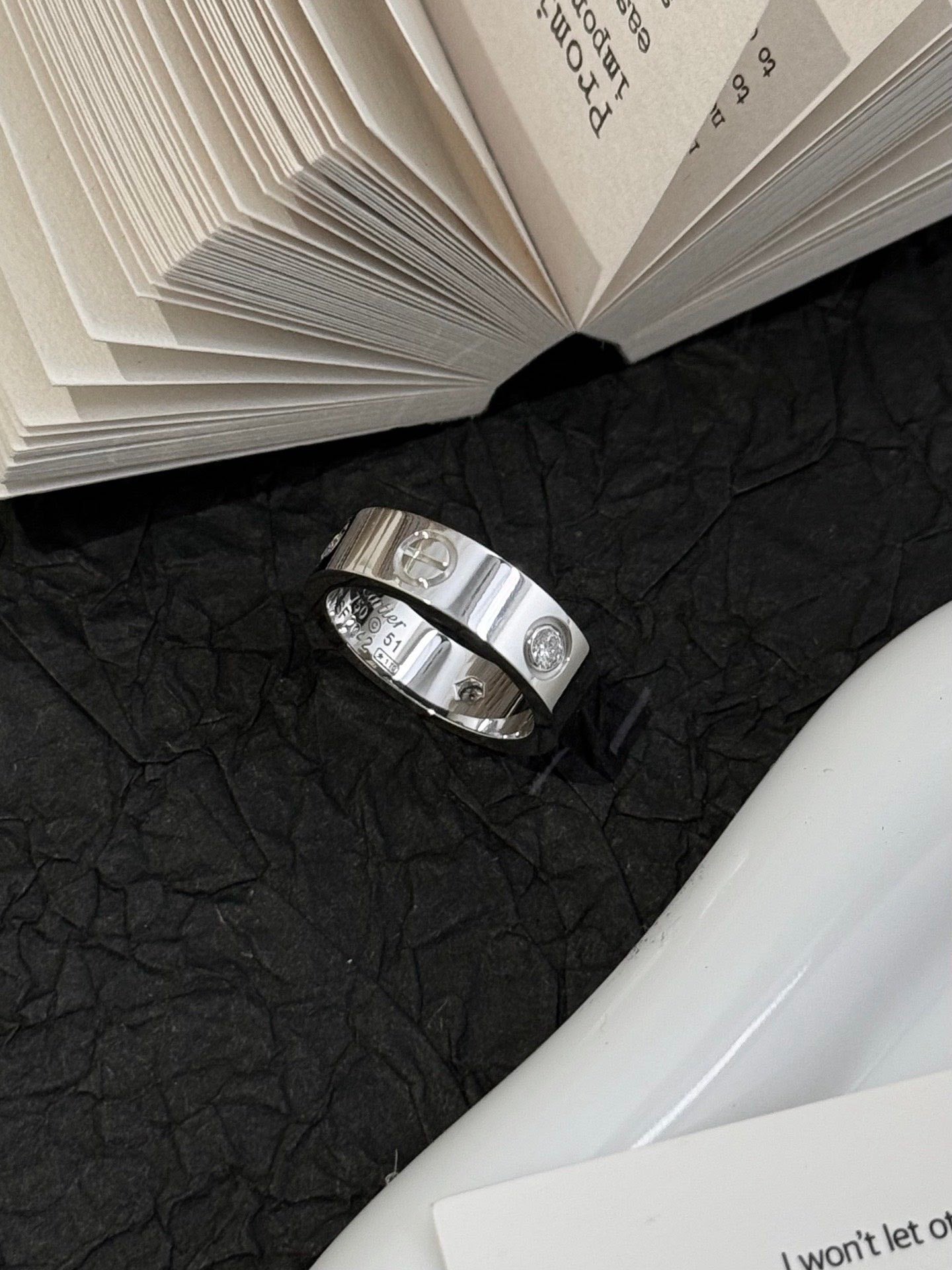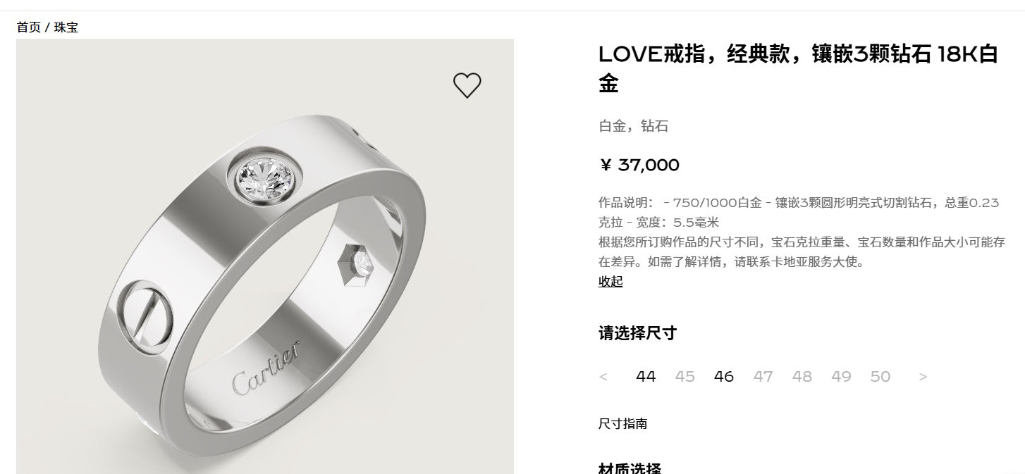 Preloved💕 Cartier Love Ring 3 Diamonds (size 51) 18k White Gold #16261