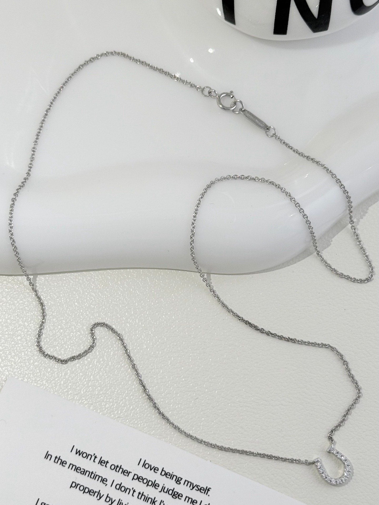 Preloved💕 Tiffany Horse Shoe Necklace, 18k White Gold & Diamonds #16074