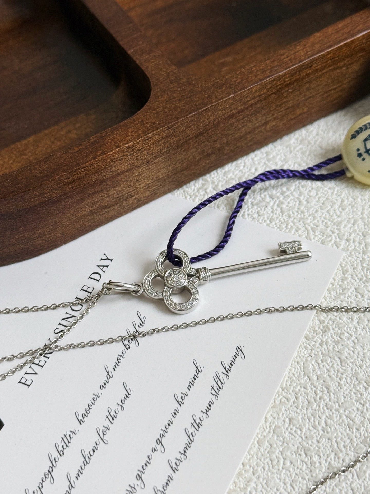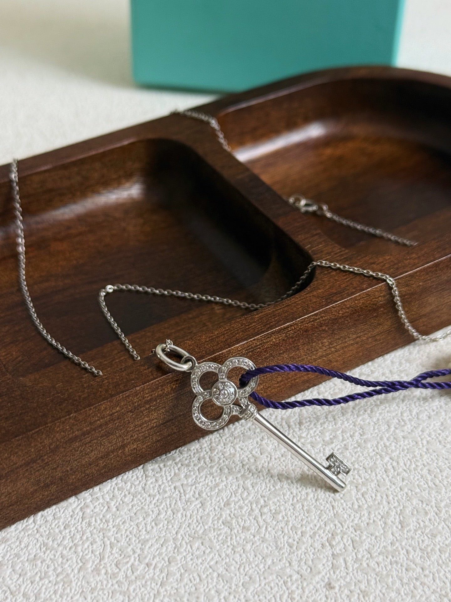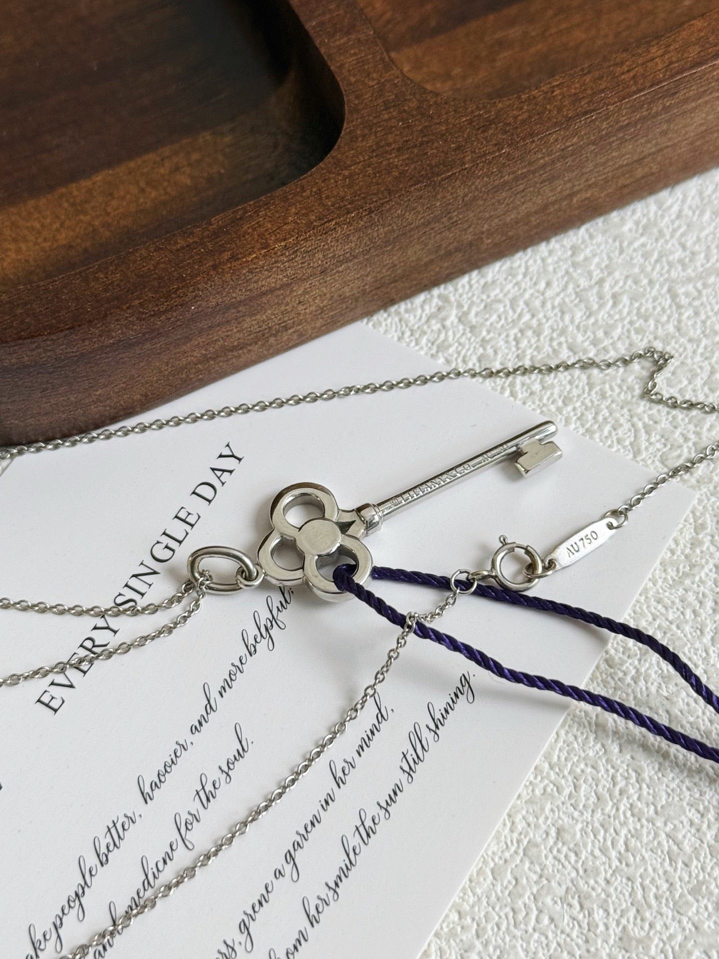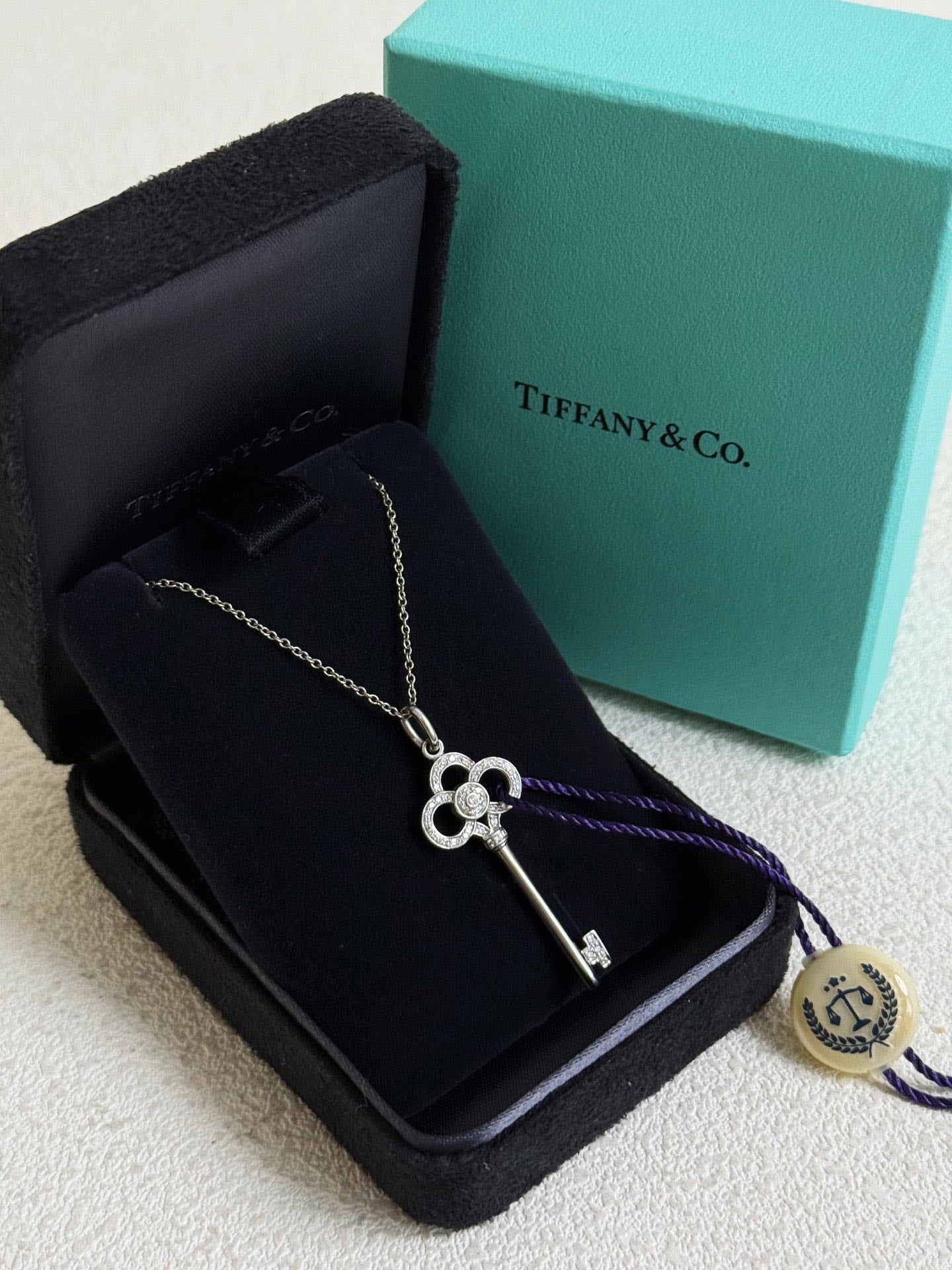 Preloved💕 Tiffany Key Necklace, 18k White Gold & Diamond #15706