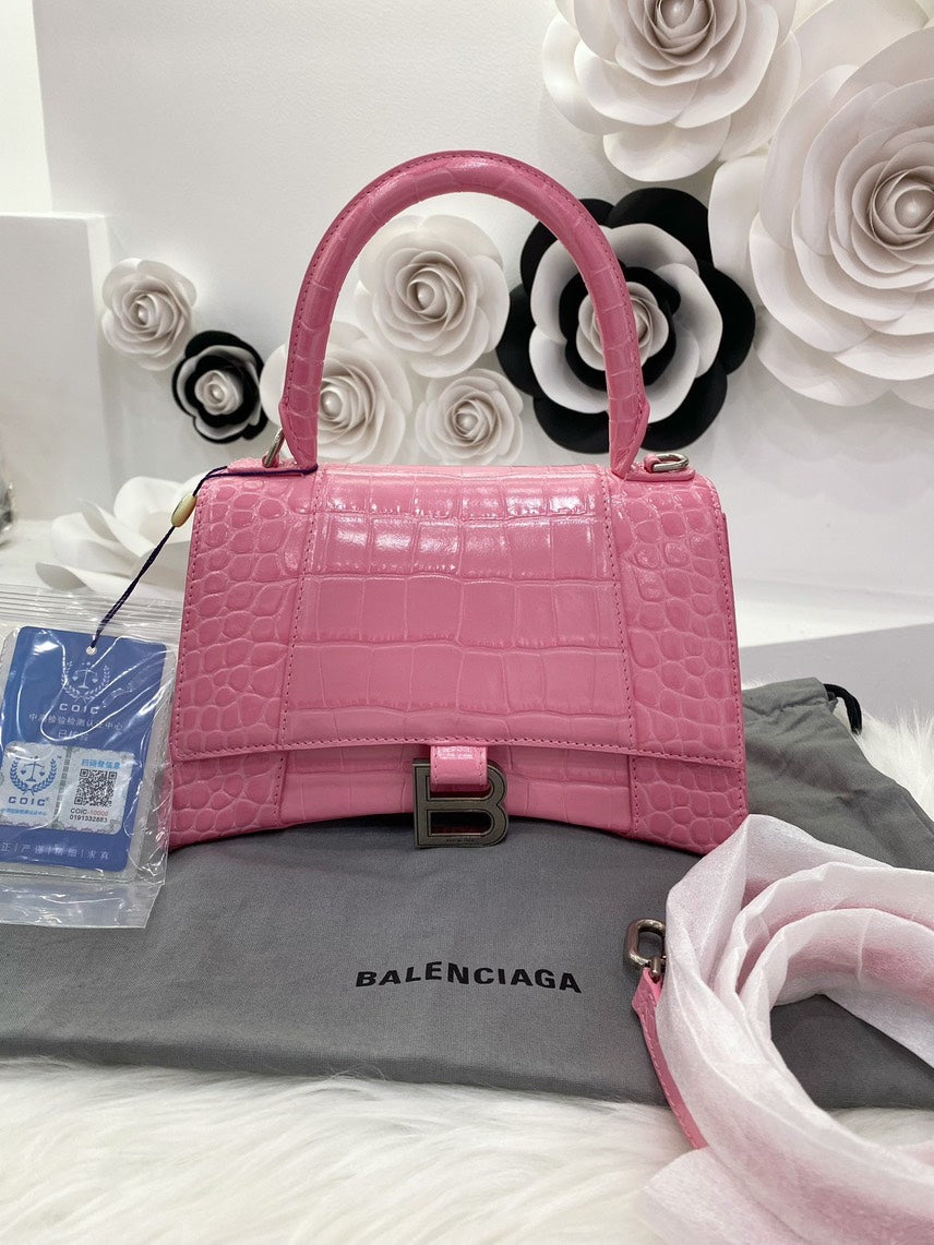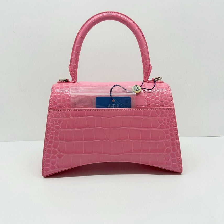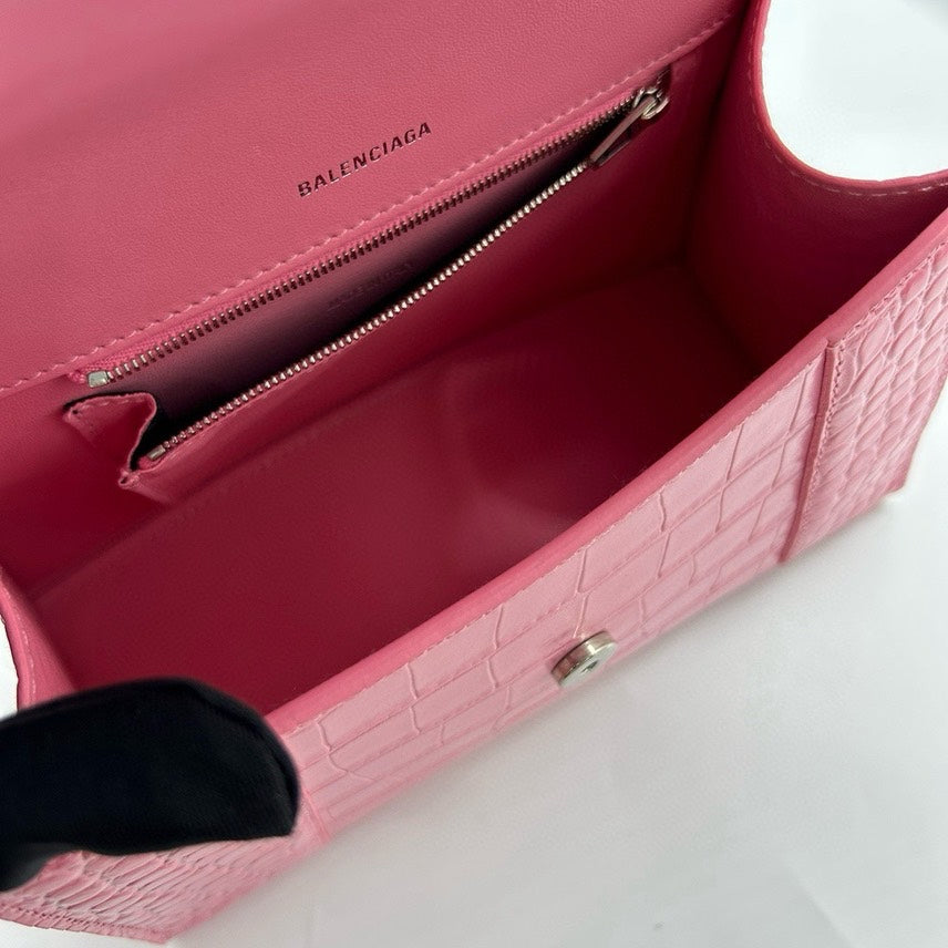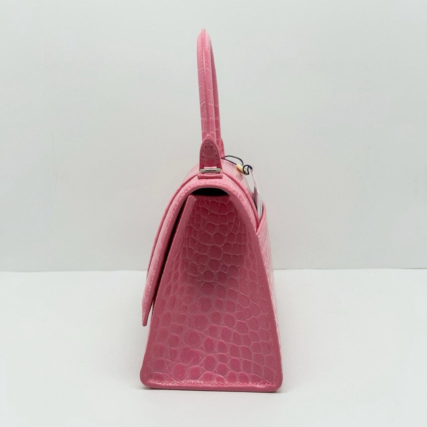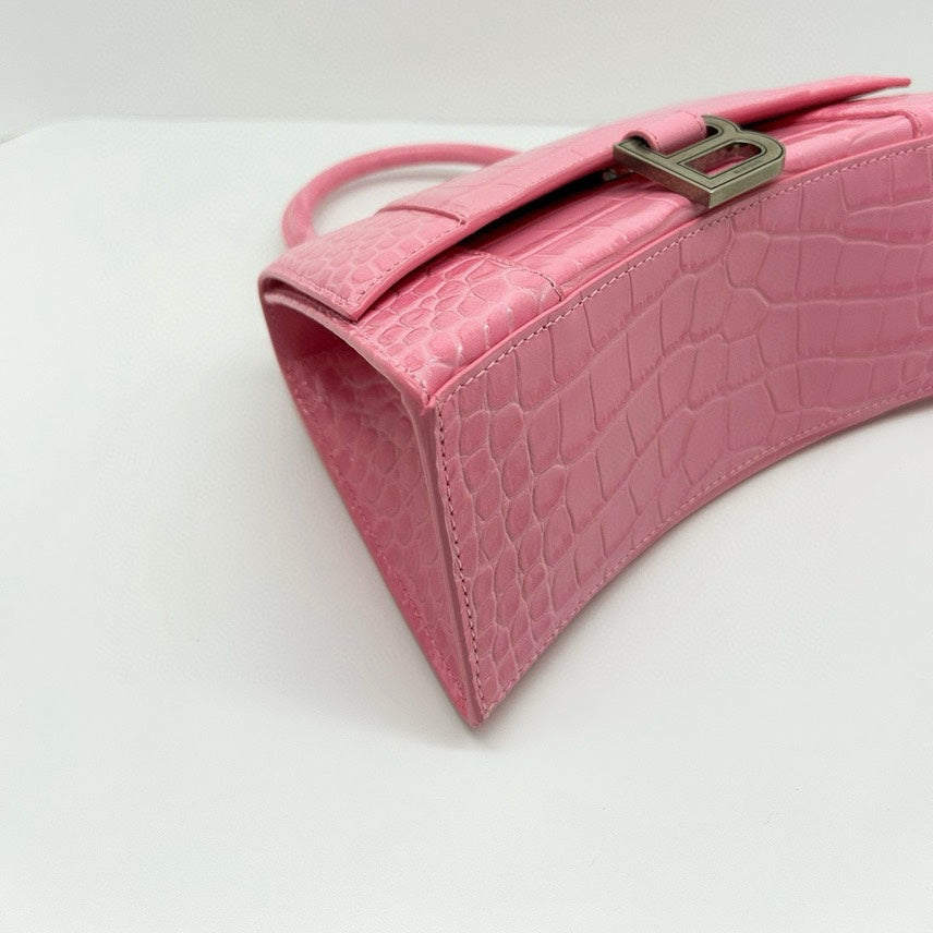 Preloved Balenciaga Hourglass collection sakura pink crocodile embossing small crossbody handbag