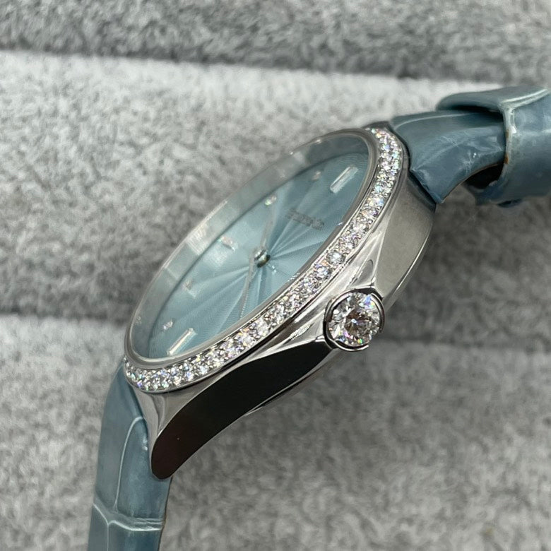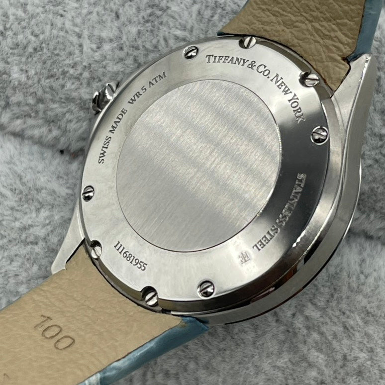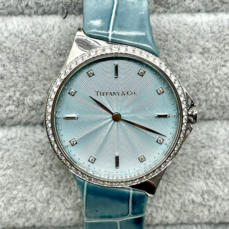 Preloved Tiffany QZ Diamond Watch 28mm SS/Leather 13.5cm zn4575