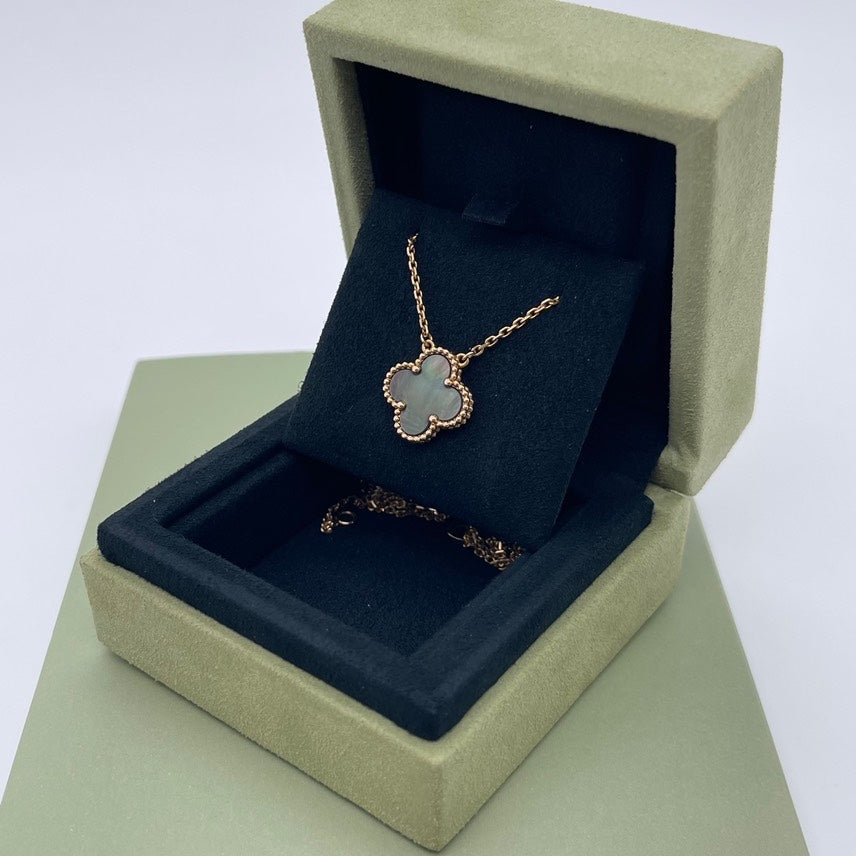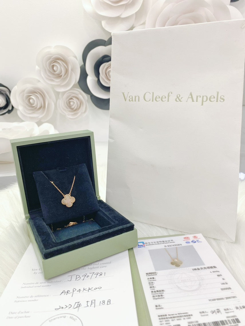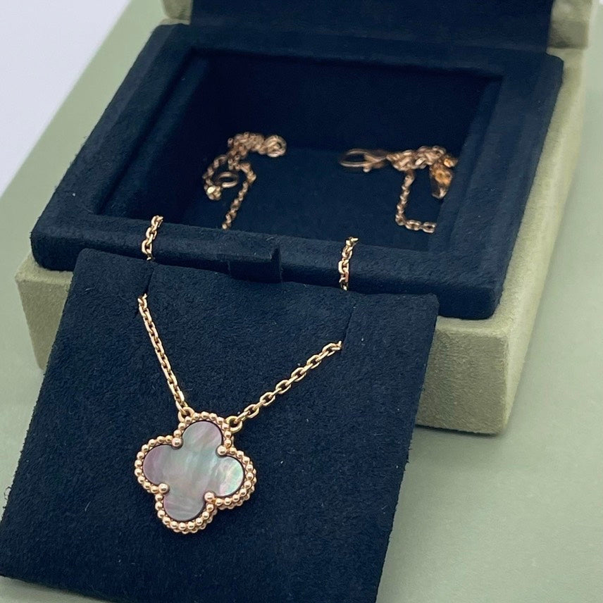 Preloved Van Cleef & Arpel four leaf clover collection 18K rose gold mother-of-pearl necklace